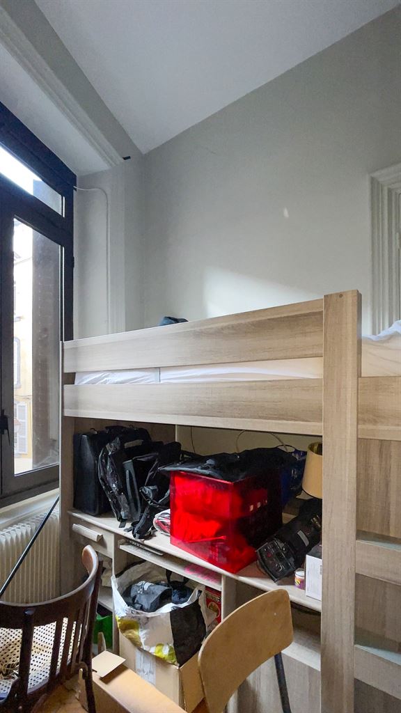 A découvrir appartement complètement rénové dans un vieil immeuble de caractère face au tram. Grande pièce de vie de 35m2 avec cheminée, cuisine ouverte - chambre de 14m2
