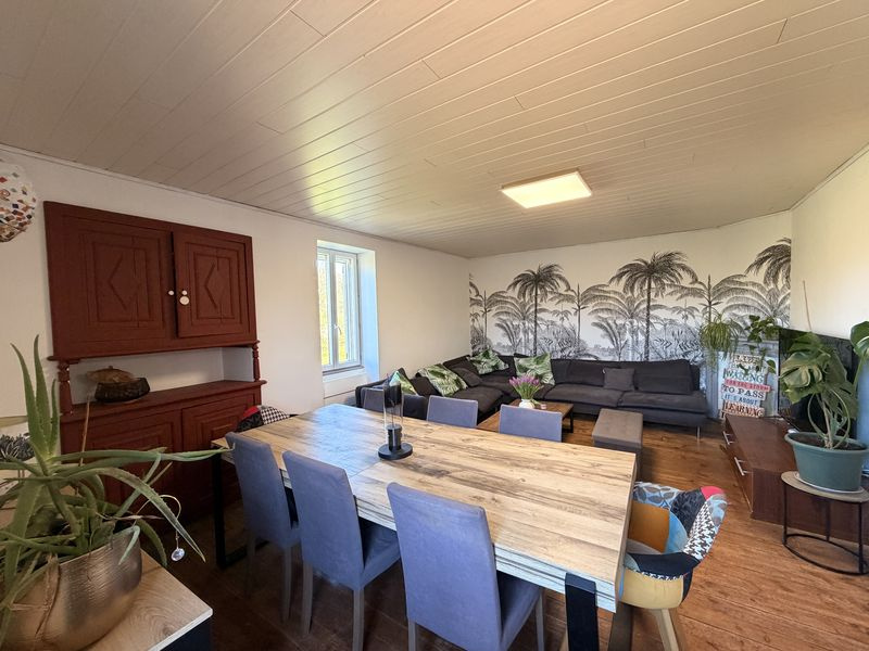 Maison de caractère de type 4, à rénover, élevée sur caves, avec grange sur deux niveaux, composée d'une cuisine, d'un grand séjour avec cheminée, de trois chambres et d'une salle d'eau; à l'étage une salle de bain. Combles aménageable...