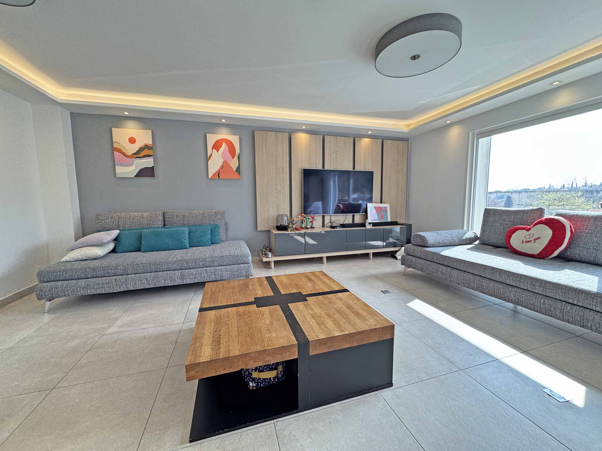 Villa contemporaine de plain-pied de 170 m2 et de 4 pièces principales comprenant : Séjour avec cheminée et cuisine équipée, une chambre de Maîtres avec placard, salle de douches et WC en suite, deux chambres avec placard, deux salles de douches avec WC, un ce...