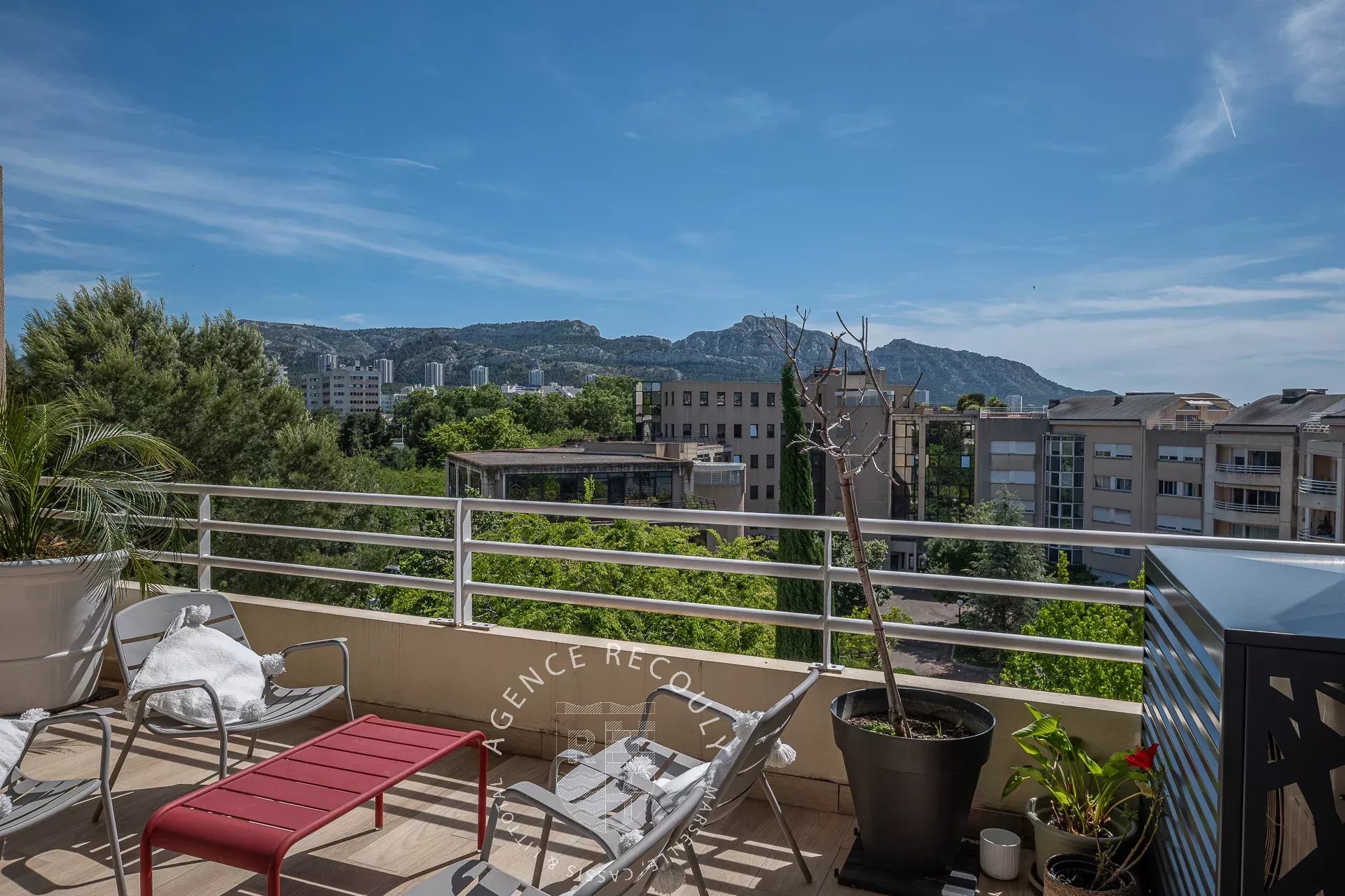 Dans le quartier prisé de Vauban, située dans une impasse au calme absolu, cette belle maison d’architecte d'une surface habitable de 130 m2 profite de deux terrasses et d'une vue panoramique sur Notre Dame de la Garde et le vallon de Vauban depuis s...