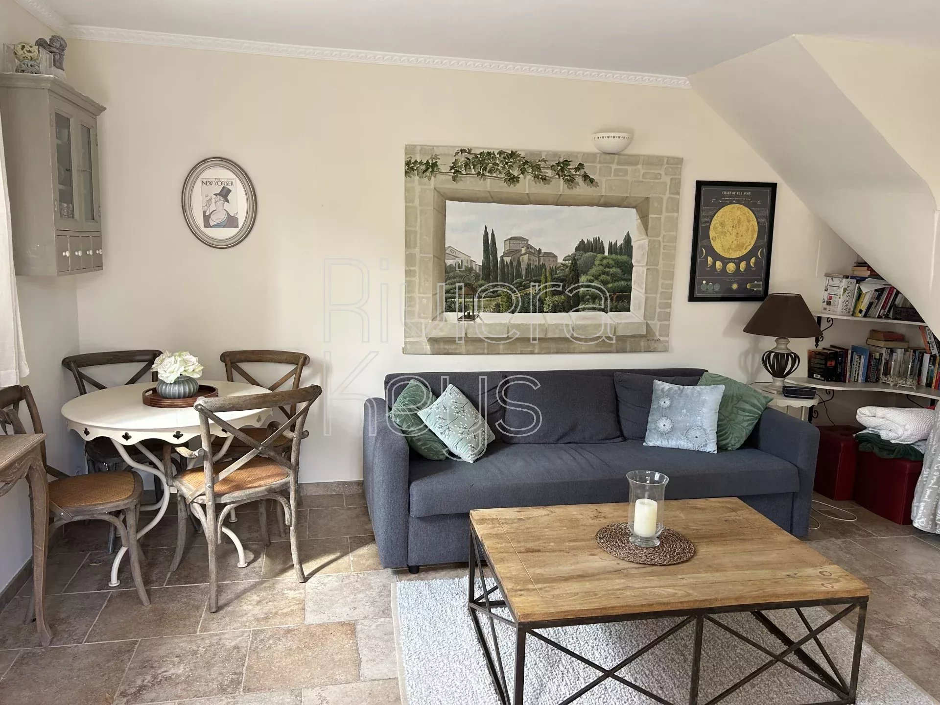 Niché dans une rue calme, ce duplex de 64 m² offre un cadre de vie paisible et authentique. Cet appartement, situé dans une petite copropriété, séduit par son patio-terrasse ensoleillé, idéal pour profiter du climat privilégié de la Côte d’Azur.