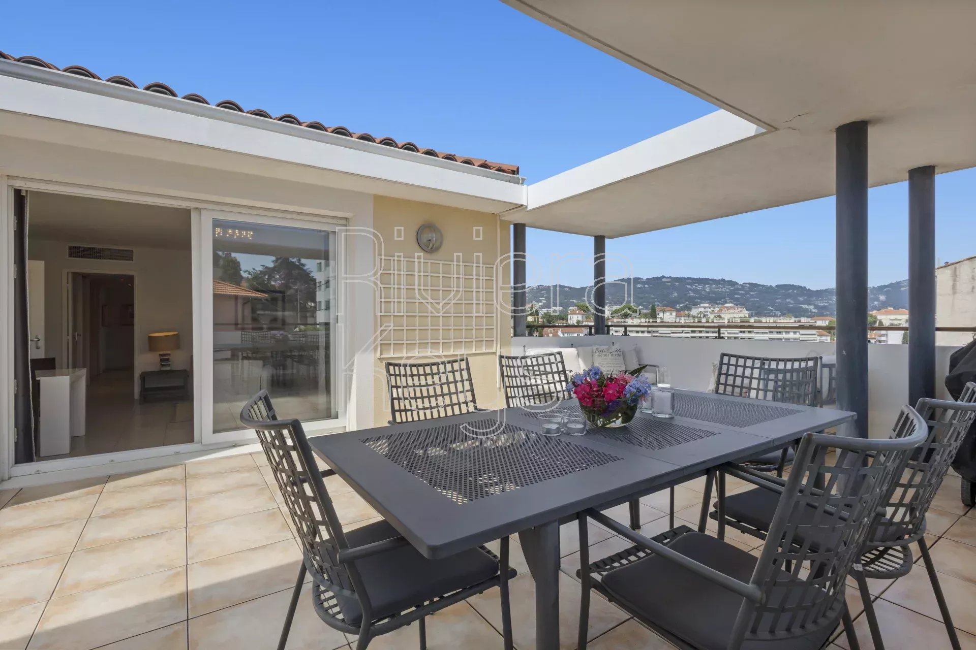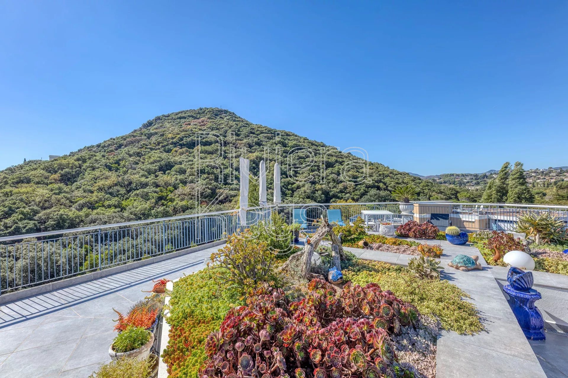 Ce superbe appartement de 122 m² au dernier étage bénéficie d’une terrasse de 160 m² offrant une vue panoramique sur la mer et sur le San Peyre.?Il se compose d’un vaste séjour lumineux avec salle à manger et cuisine équipée, d’une suite parentale avec dressin...