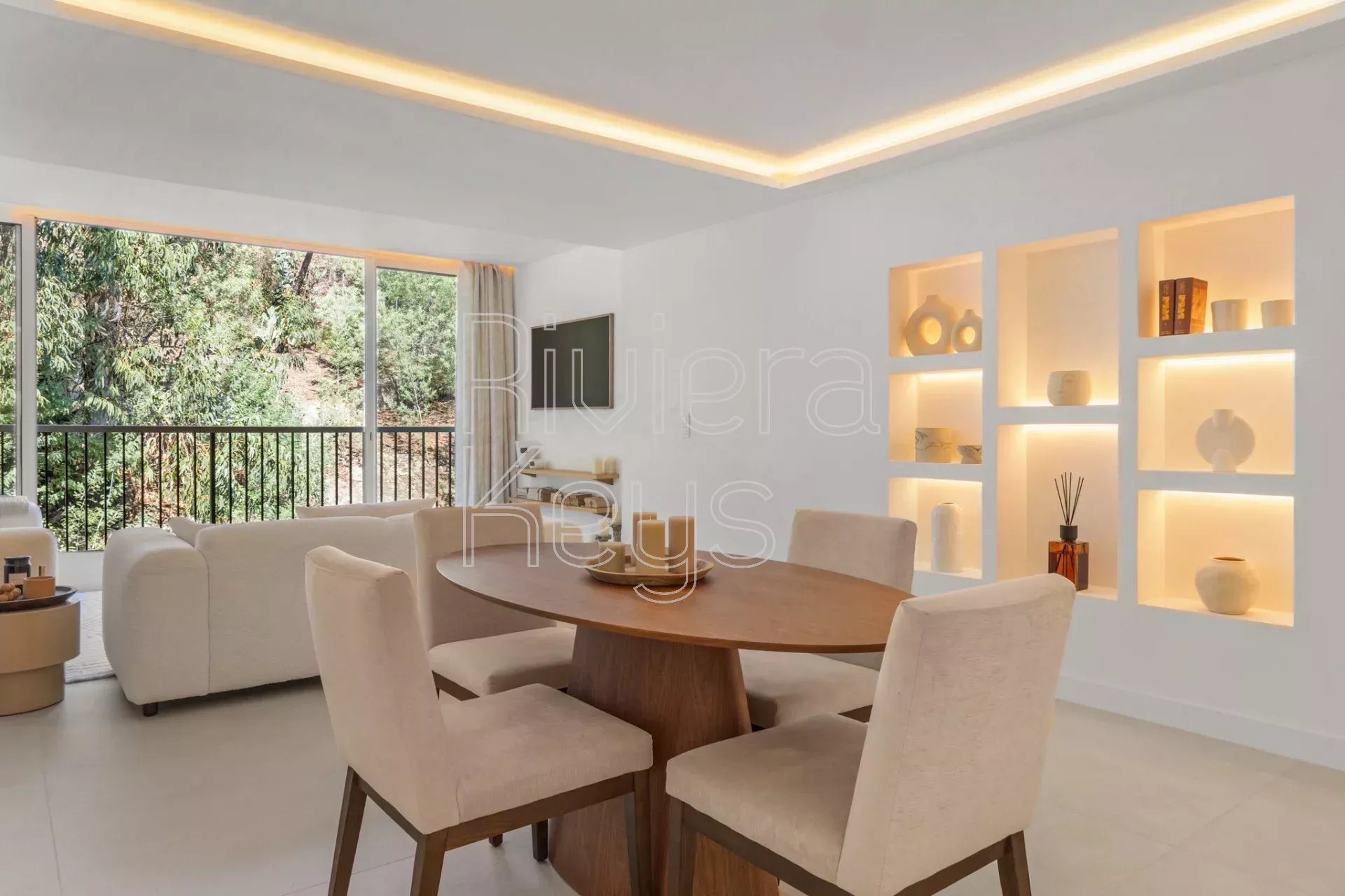 Ce superbe appartement de 62 m², entièrement rénové avec des matériaux haut de gamme, domine la baie de Villefranche, le Cap-Ferrat et jusqu’à Villeneuve-Loubet.