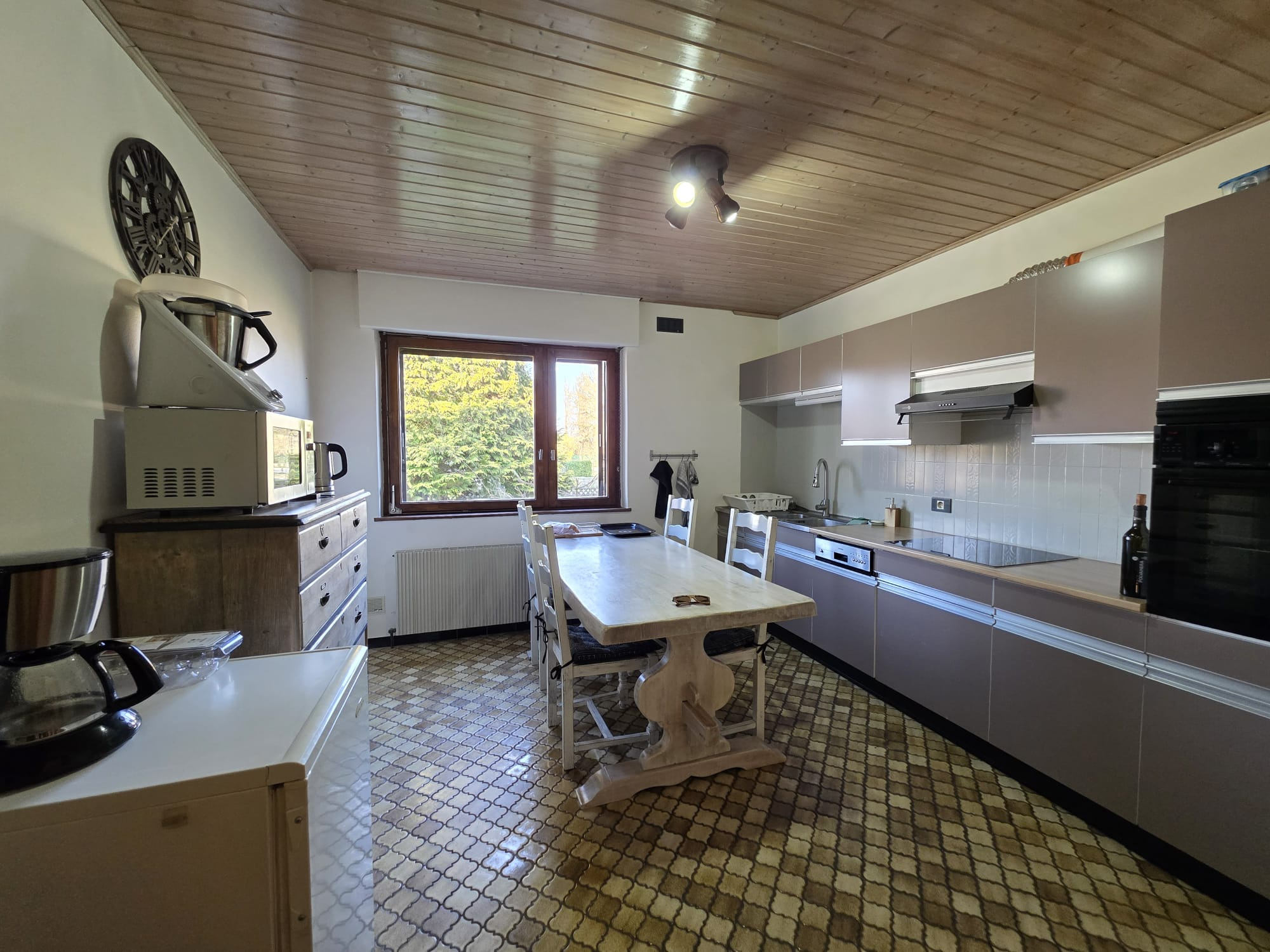 D'une surface habitable de 120 m2, vous trouverez au rdc un salon/salle à manger, une cuisine, une chambre et un wc.