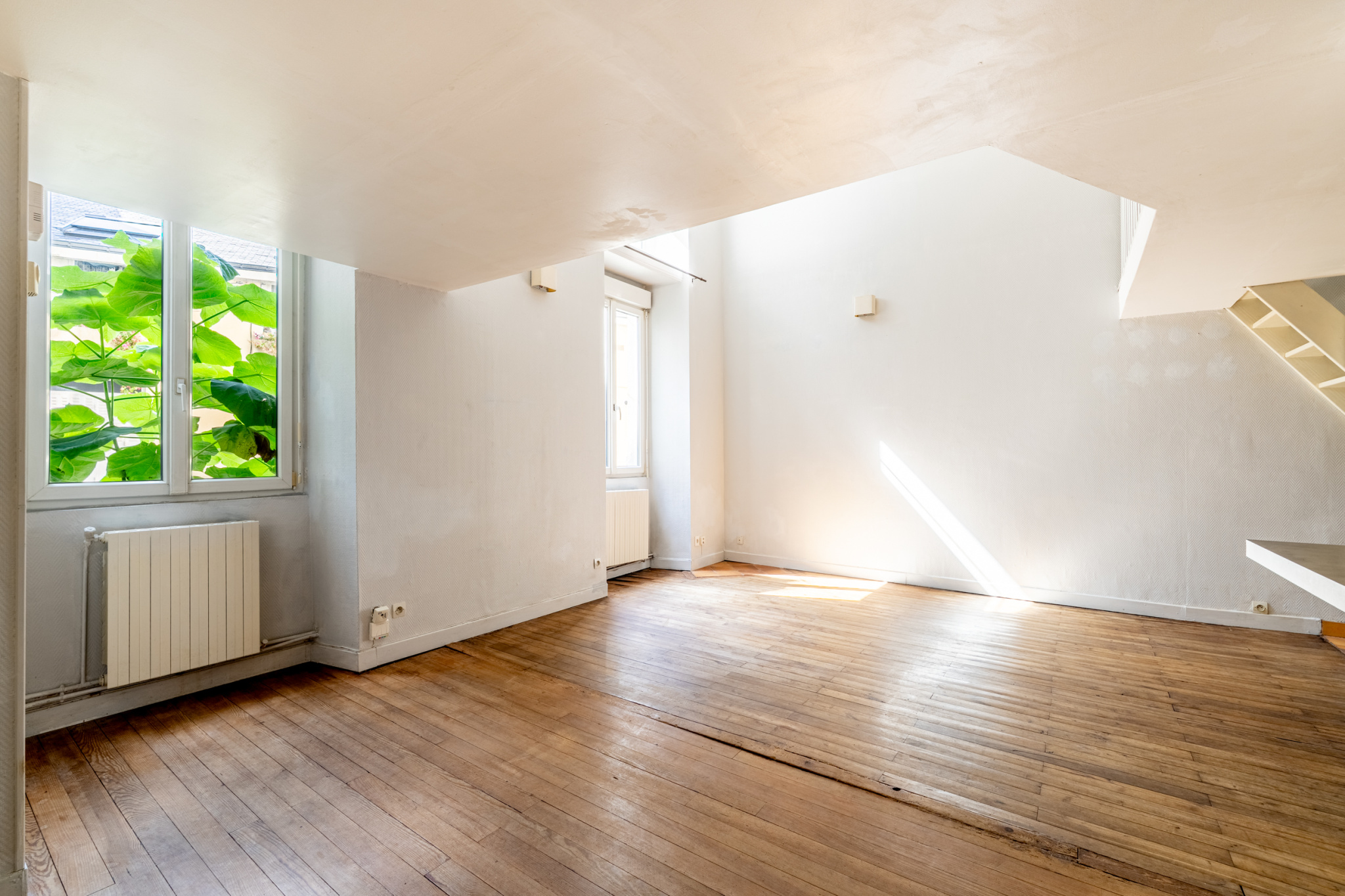 Exclusivité en plein coeur de NANTES, à deux pas de la place Graslin, en rez-de-chaussée sur cour d'un immeuble acien, ce charmant appartement en duplex de 63,49m2 au sol (61,49m2 carrez) offre : - au niveau principal : un séjour sur parquet avec un belle...