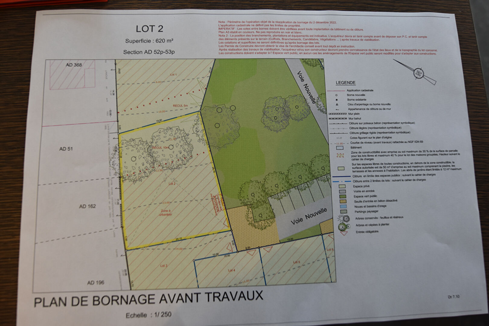 Terrain constructible et viabilisé d'une surface de 620m², emprise au sol de 30% avec espace vert. Zone AU au plan local d'urbanisme. RARE !
