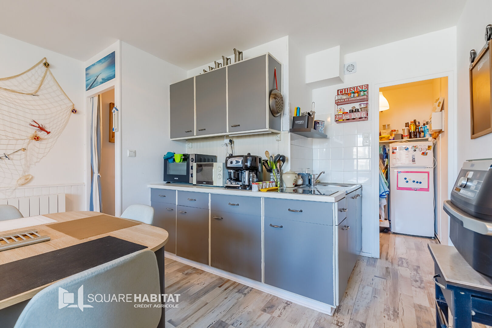 A quelques pas de la plage des Becs, charmant studio de plain-pied, se composant d'une entrée, d'un salon-séjour avec cuisine ouverte, d'une alcôve chambre, d'un cellier, d'une salle d'eau et de toilettes séparées.