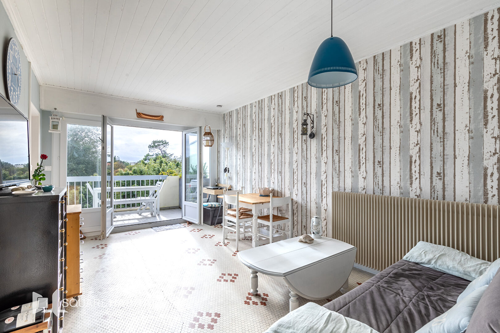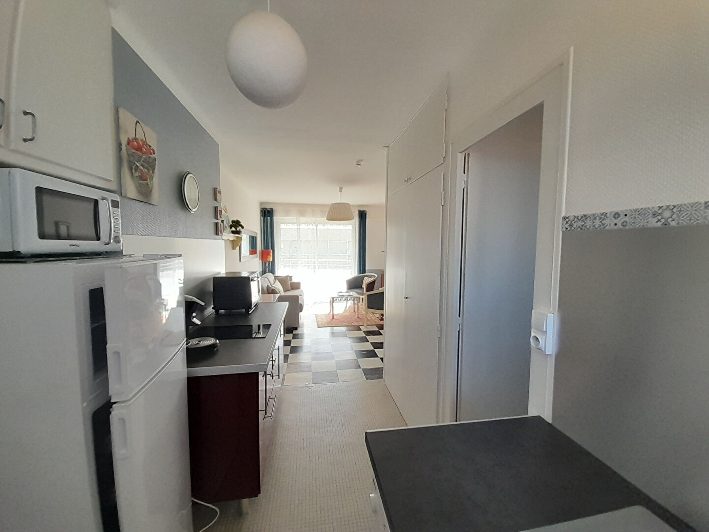 Entre le bourg et les plages, beau studio de 25.88m² comprenant cuisine équipée donnant sur pièce de vie, salle d'eau, WC, grand balcon. Exposition : sud-est.