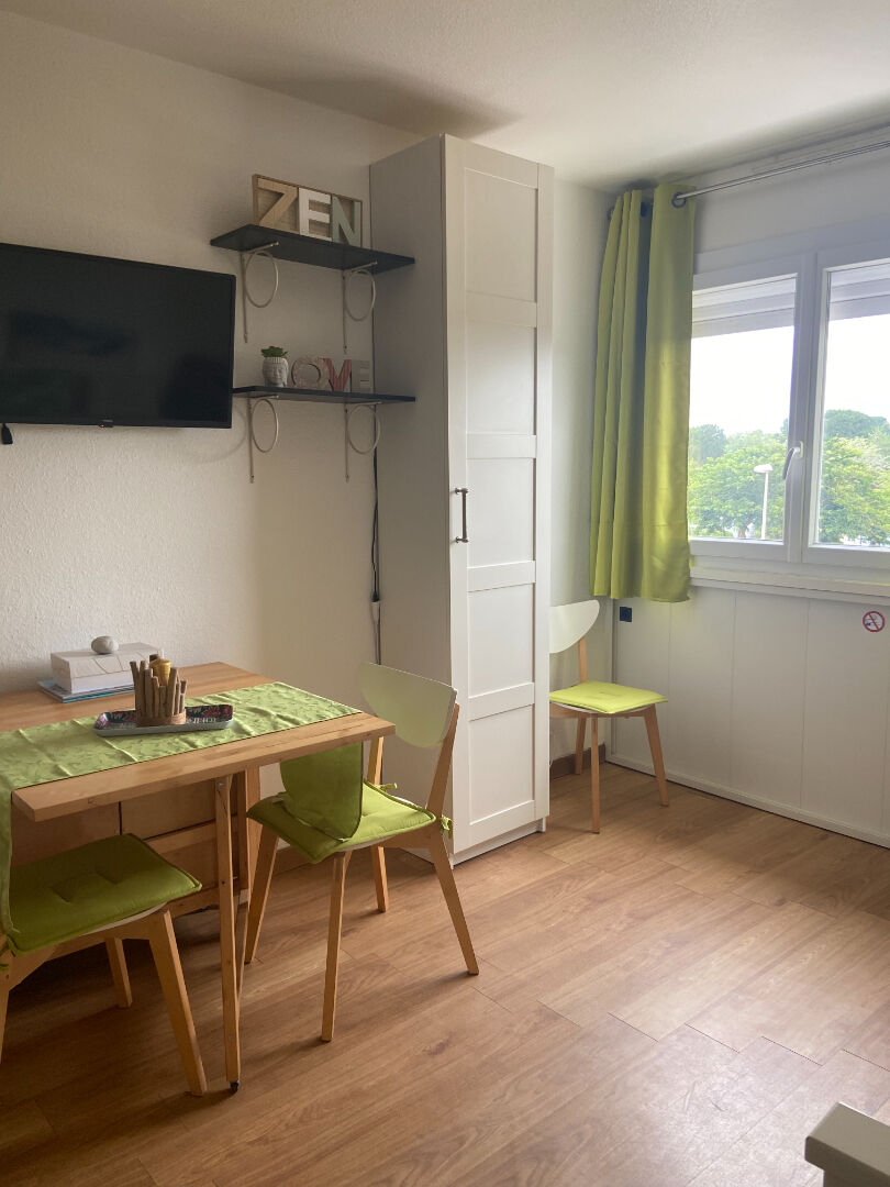 Appartement en rez-de-jardin de deux pièces principales + alcôve situé dans une résidence au calme en bordure de forêt et à seulement 500 mètres de la plage.