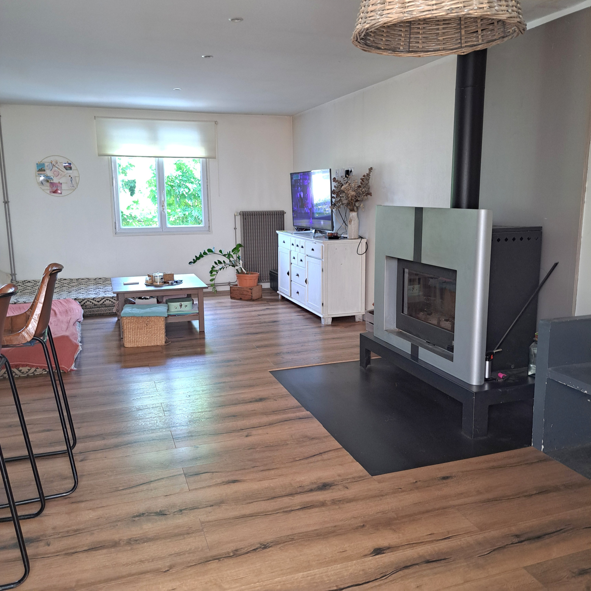 Maison comprenant, un grand salon/séjour avec un poêle à bois et une jolie cuisine ouverte équipée, dégagement, une chambre parentale av...