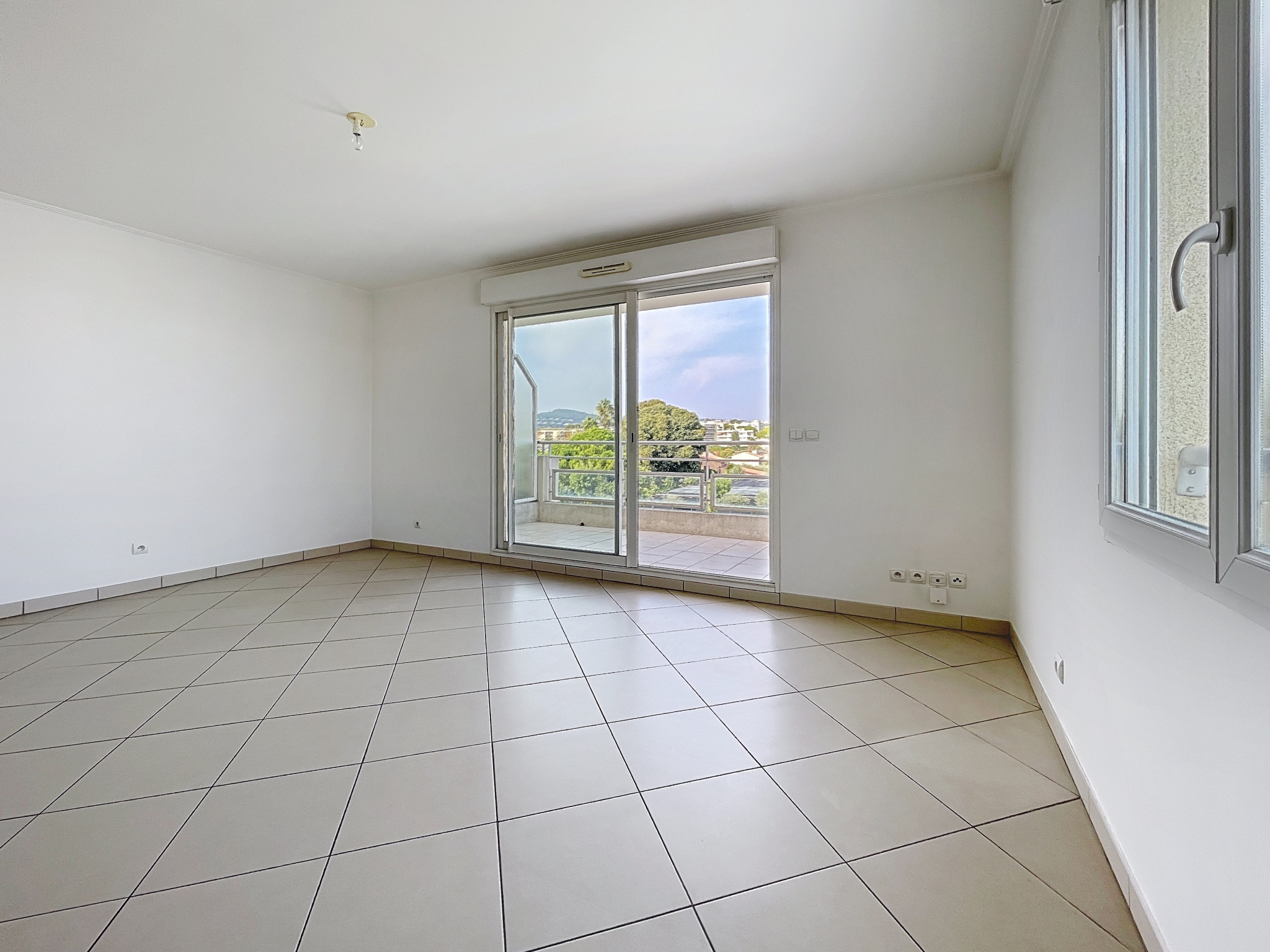 ANTIBES LA BADINE, à 5 minutes à pied du centre ville, appartement 3 pièces comprenant hall d'entrée, salon sur balcon 9 m2, cuisine indépendante, dégagement avec grands placards possibles, 2 chambres, 1 salle d'eau et wc