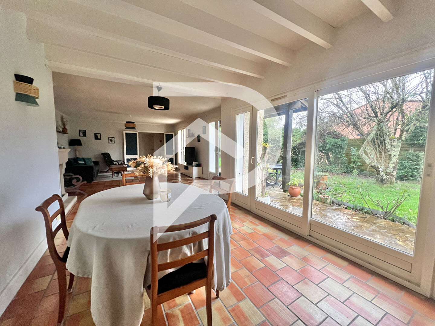 La pièce de vie vous accueille avec sa charpente apparente et une belle luminosité tout au long de la journée grâce...