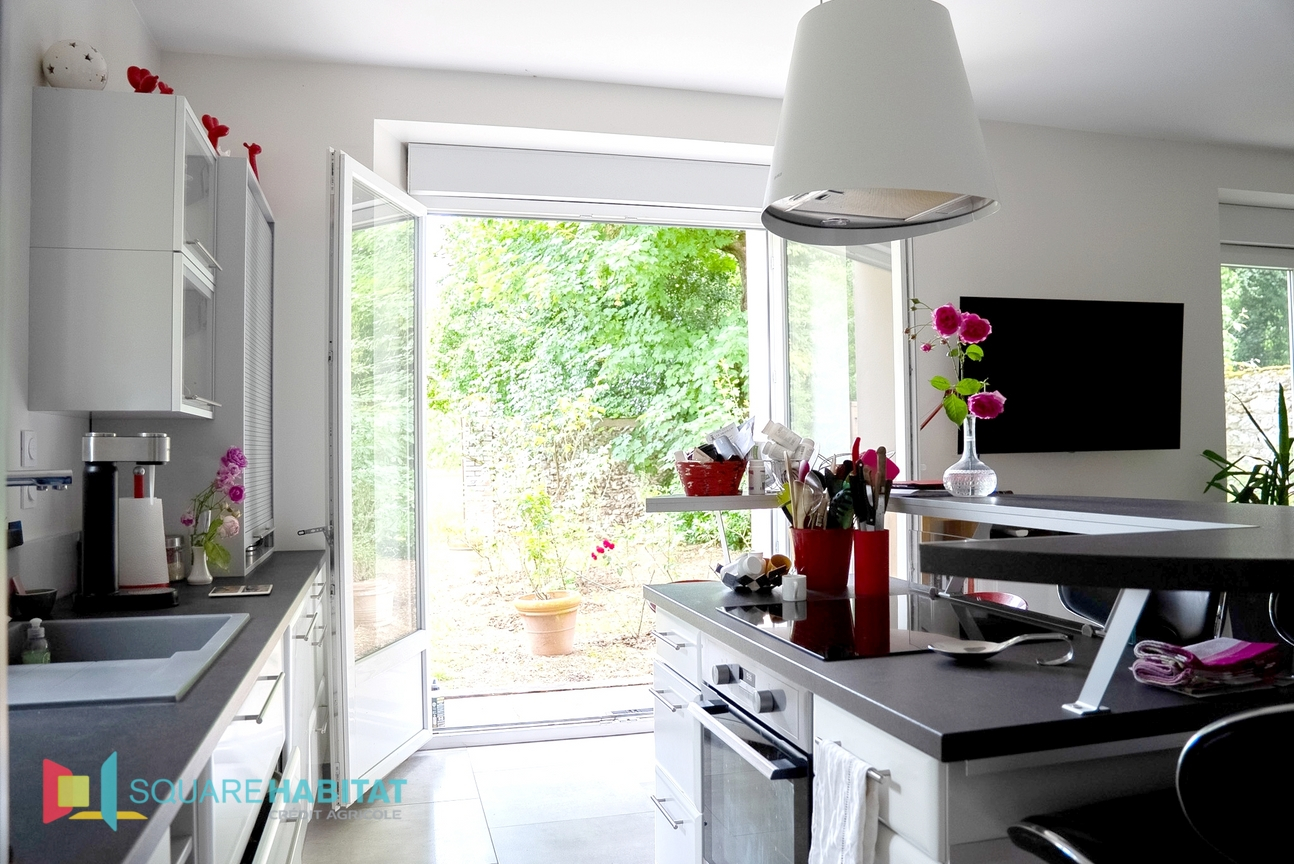 HAMEAU DES BORDES - Beau pavillon récent de plain pied comprenant : entrée, chambre avec salle d'eau privative, salle de bains avec WC, buanderie, 3 autre chambres, WC, chaufferie, cuisine aménagée et équipée, salon-séjour. Sur un terrain clos d'env...
