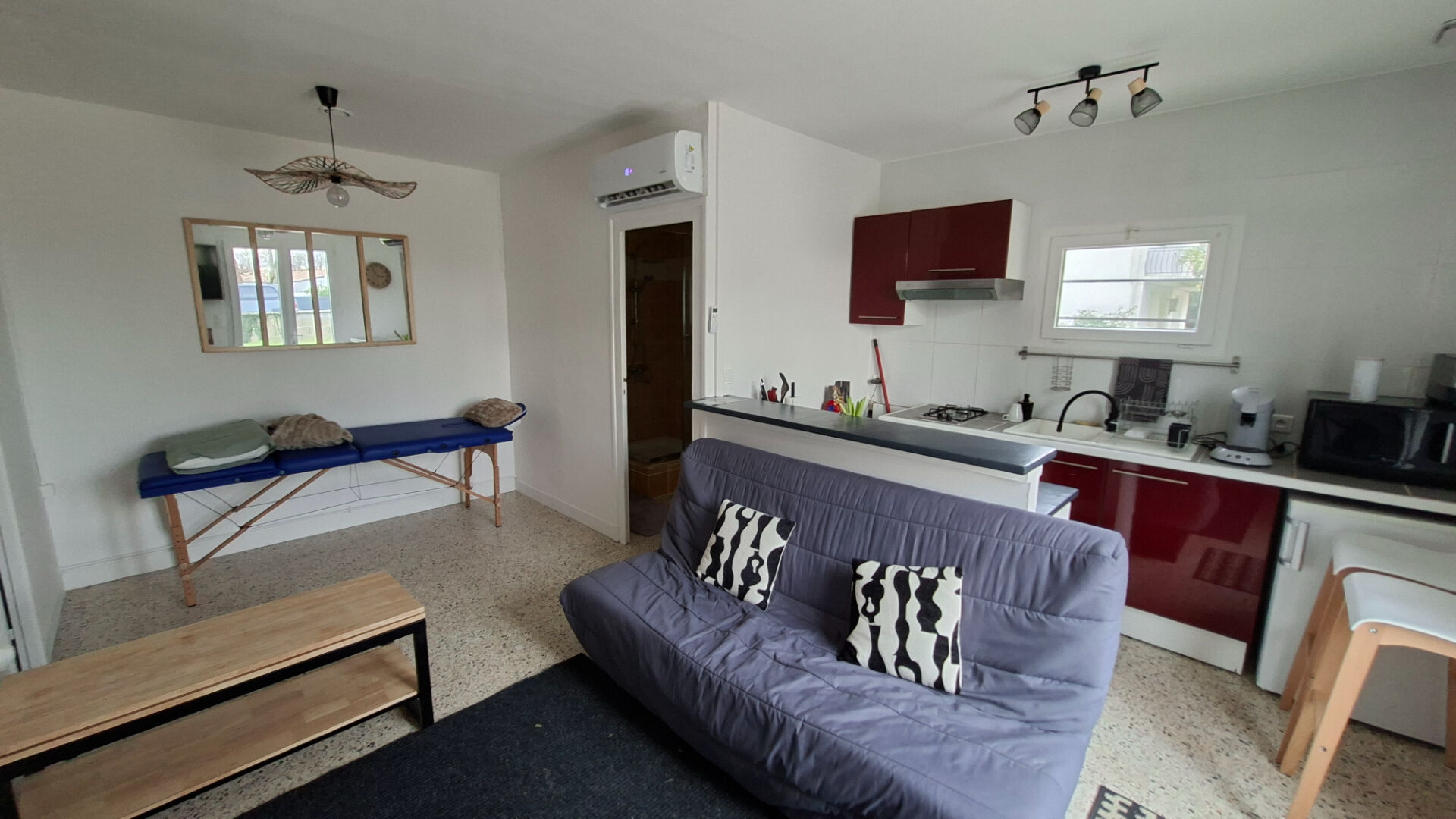 Elle se compose d'une cuisine aménagée et entièrement équipée, ouverte sur un séjour lumineux, offrant un espace de vie conviv...