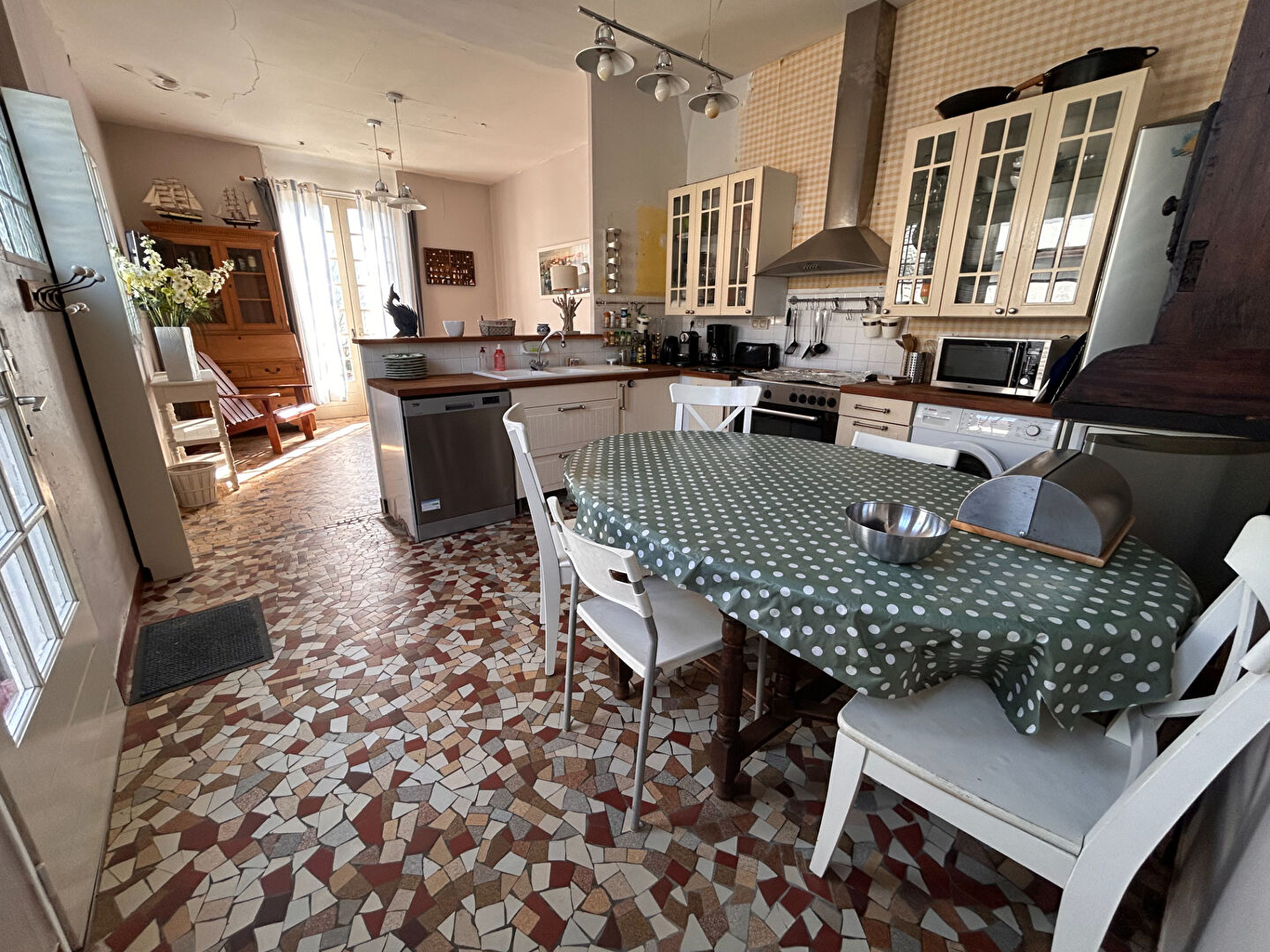 Au rez-de-chaussée vous découvrirez une grande cuisine aménagée et équipée ouvrant sur la cour, un salon.