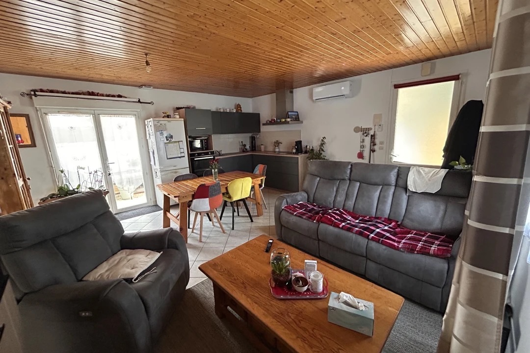 La maison se compose d'une grande cuisine conviviale, un séjour lumineux bénéficiant de belles expositions, trois chambres et pièce à usage d'at...