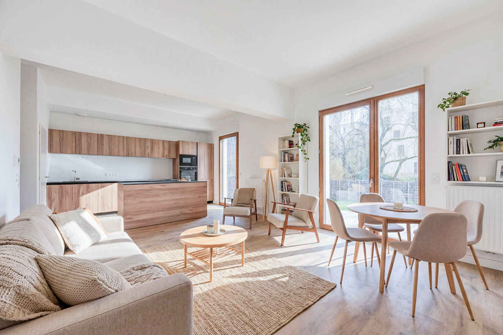 'cet appartement lumineux est composée d'une cuisine équipée neuve ouvrant sur un grand séjour et donnant sur un jardin ...