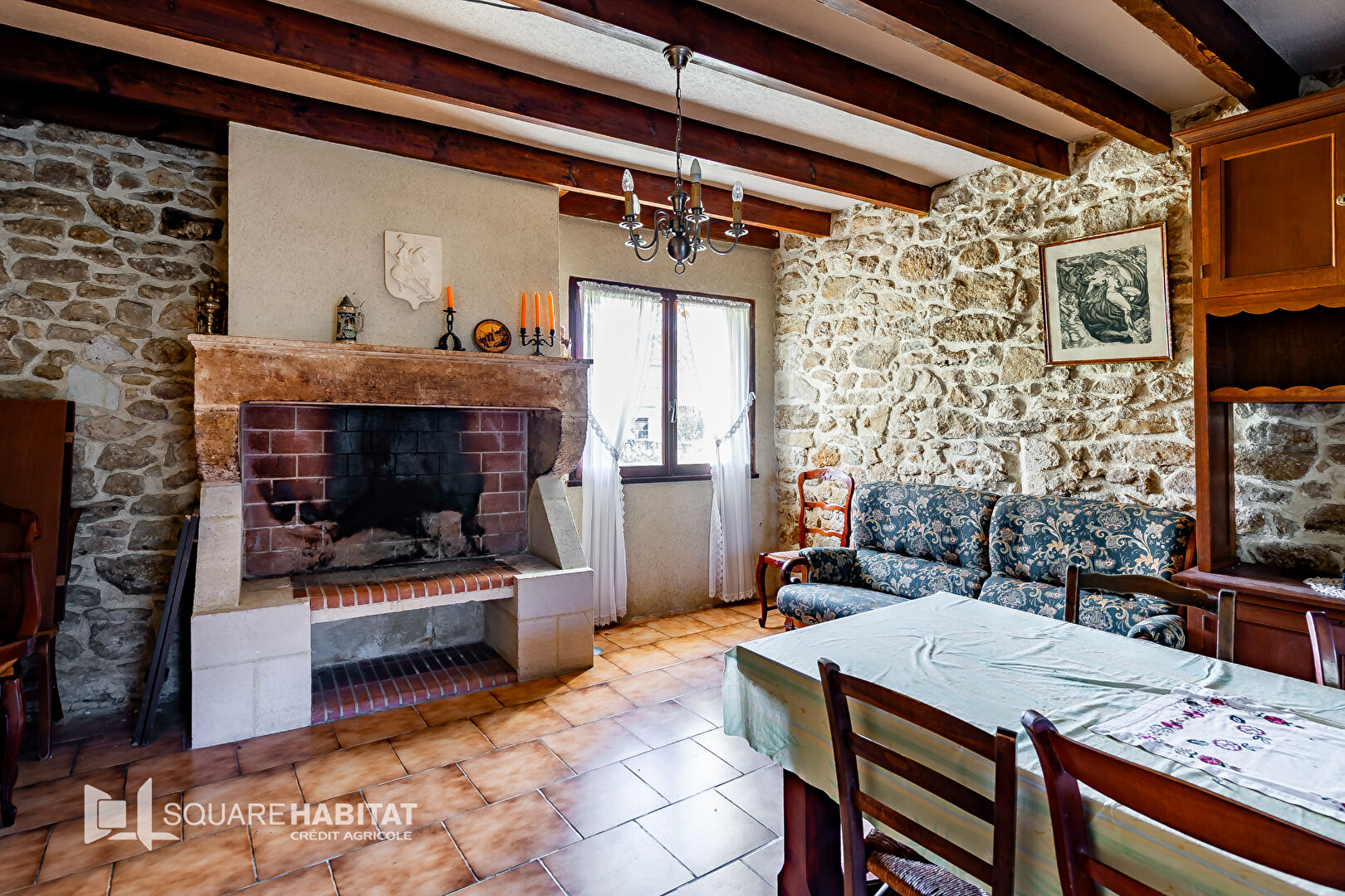 Le charme de l'ancien Cheminée en pierre , Poutres apparentes, Cuisine et ...