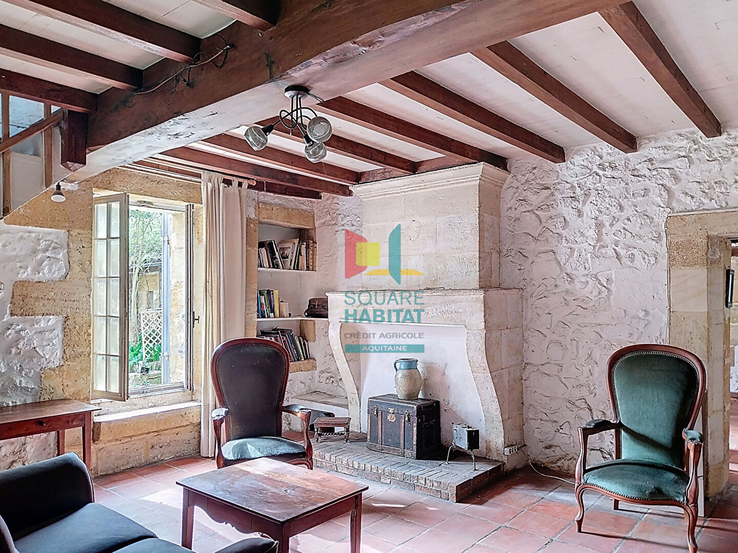 proche Créon, maison en pierres actuellement louée offrant un beau séjour , une cuisine, deux chambres et salle de bains,