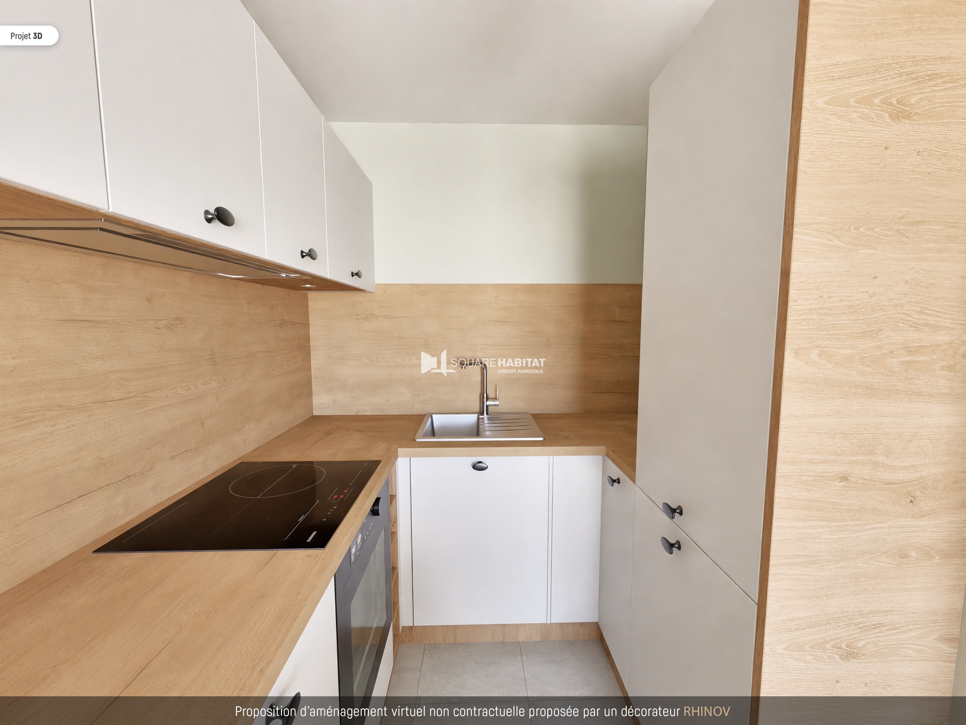 Idéalement situé, au 1er étage, appartement comprenant une entrée avec placard, un séjour lumineux avec cuisine ouverte donnant sur un confortable balcon exposé plein ouest, une salle de bains avec WC et une chambre avec placard.