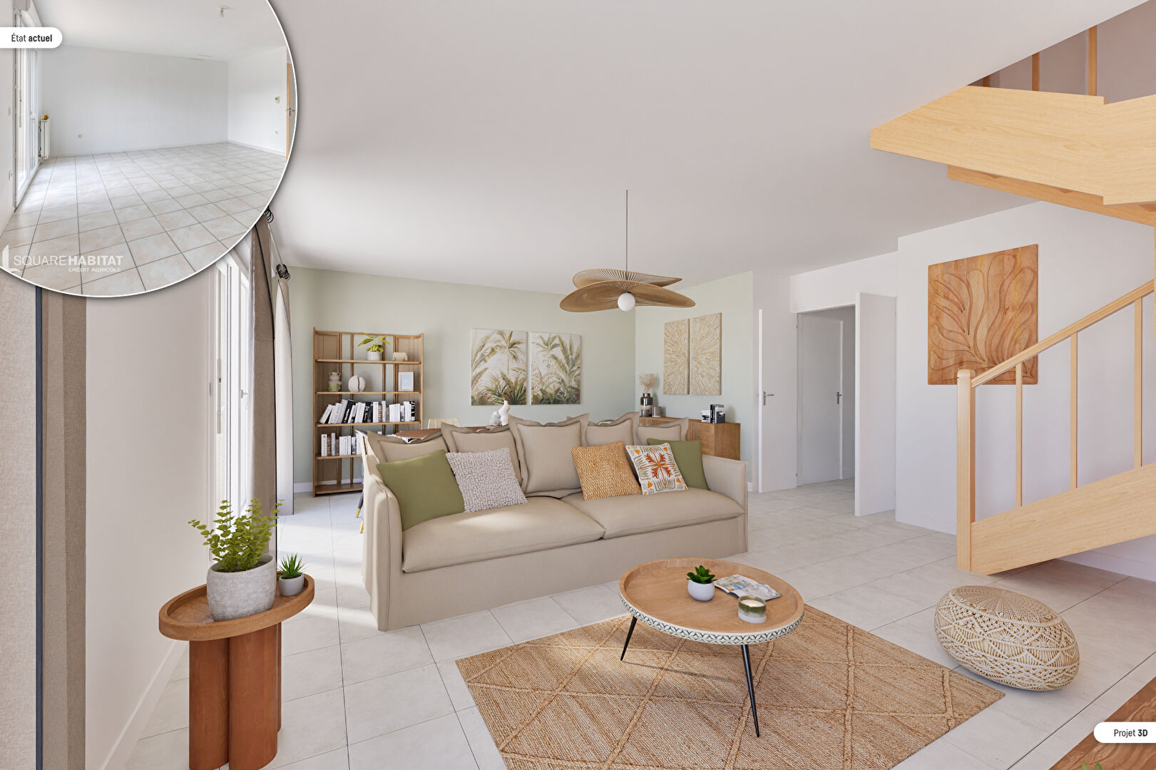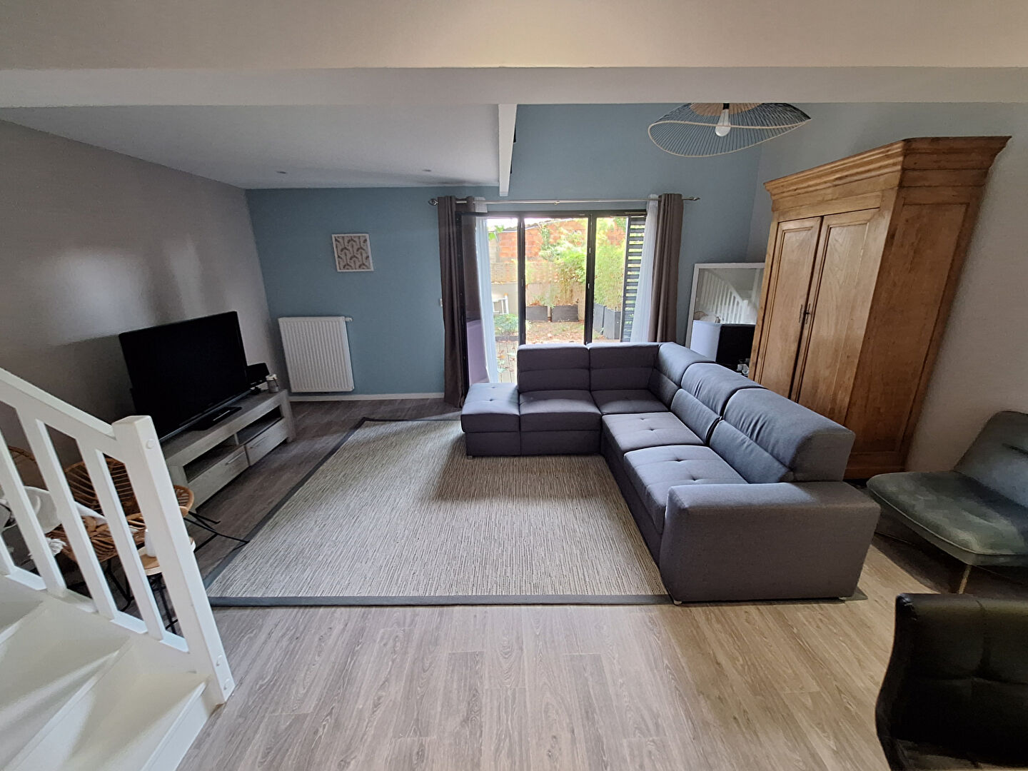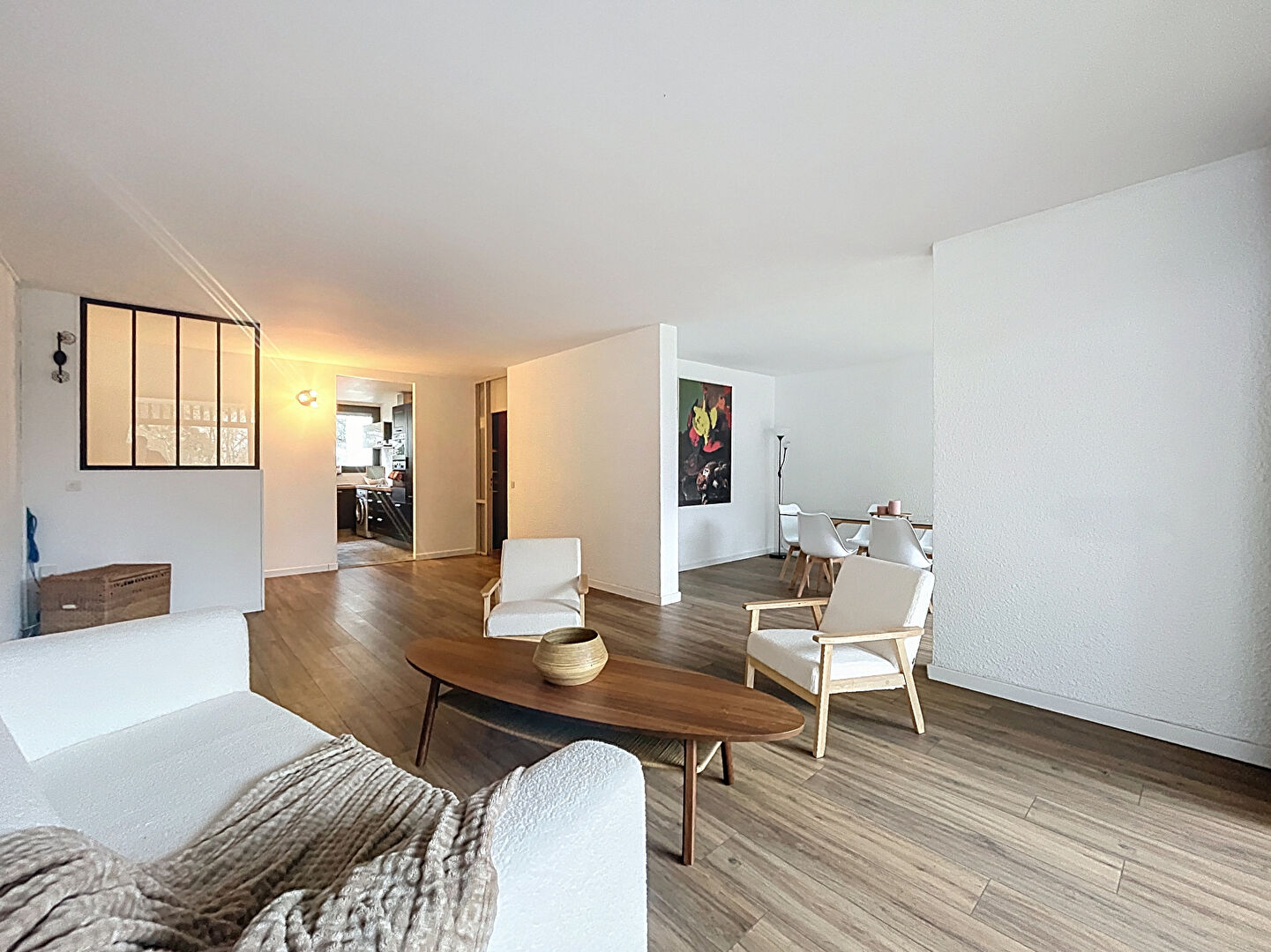 Vous entrez dans une vaste pièce de vie lumineuse et chaleureuse avec cuisine américaine aménagée qui...