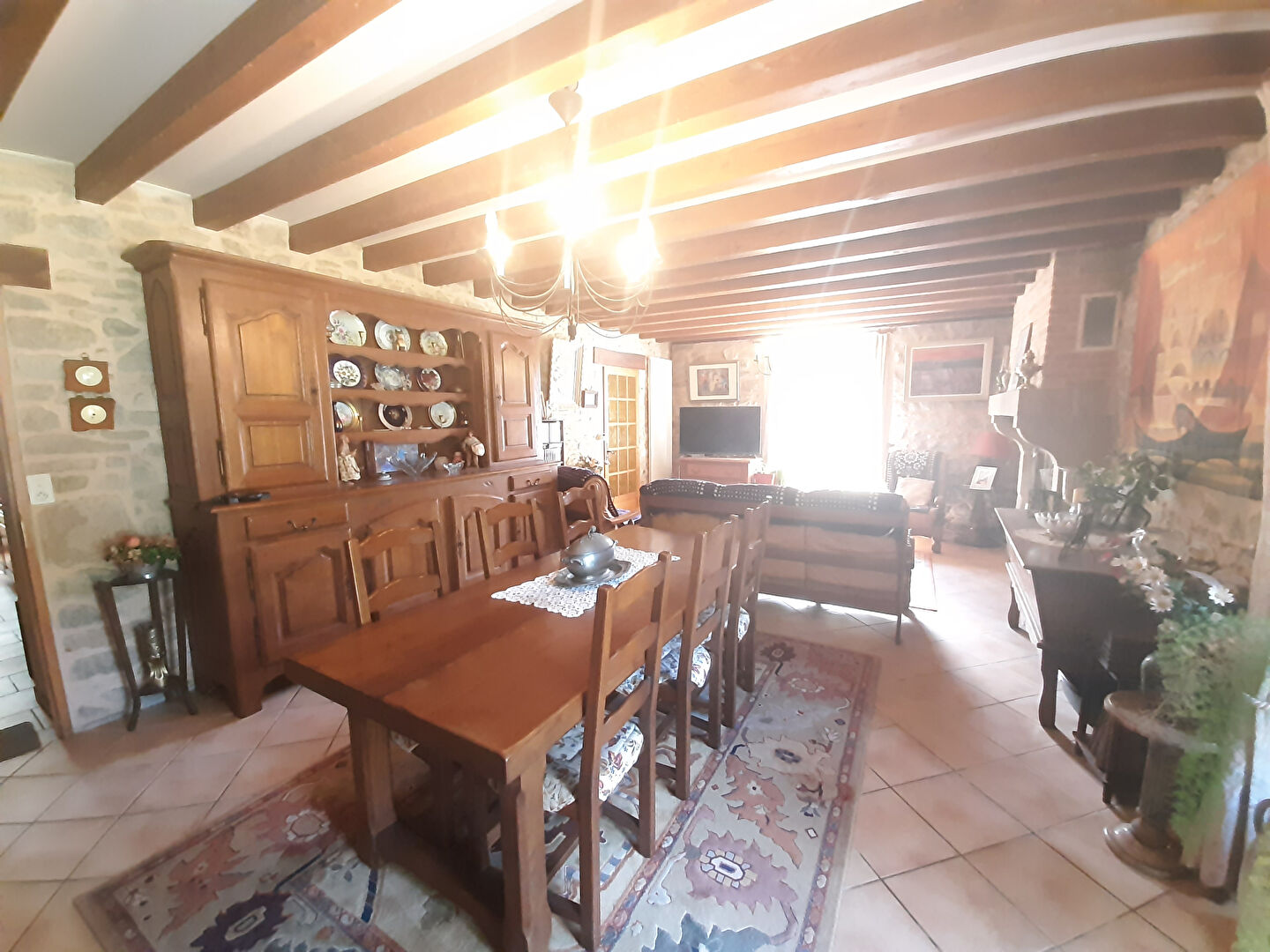 Peyrilhac, 10 min COUZEIX, Maison pierre rénovée avec des matériaux de qualité, composée d'un espace de vie de 35m² de plain pied sur vaste jardin, une cuisine séparée, un espace bibliothèque de 26m², à l'étage 4 chambres, une salle d'eau, wc, g...