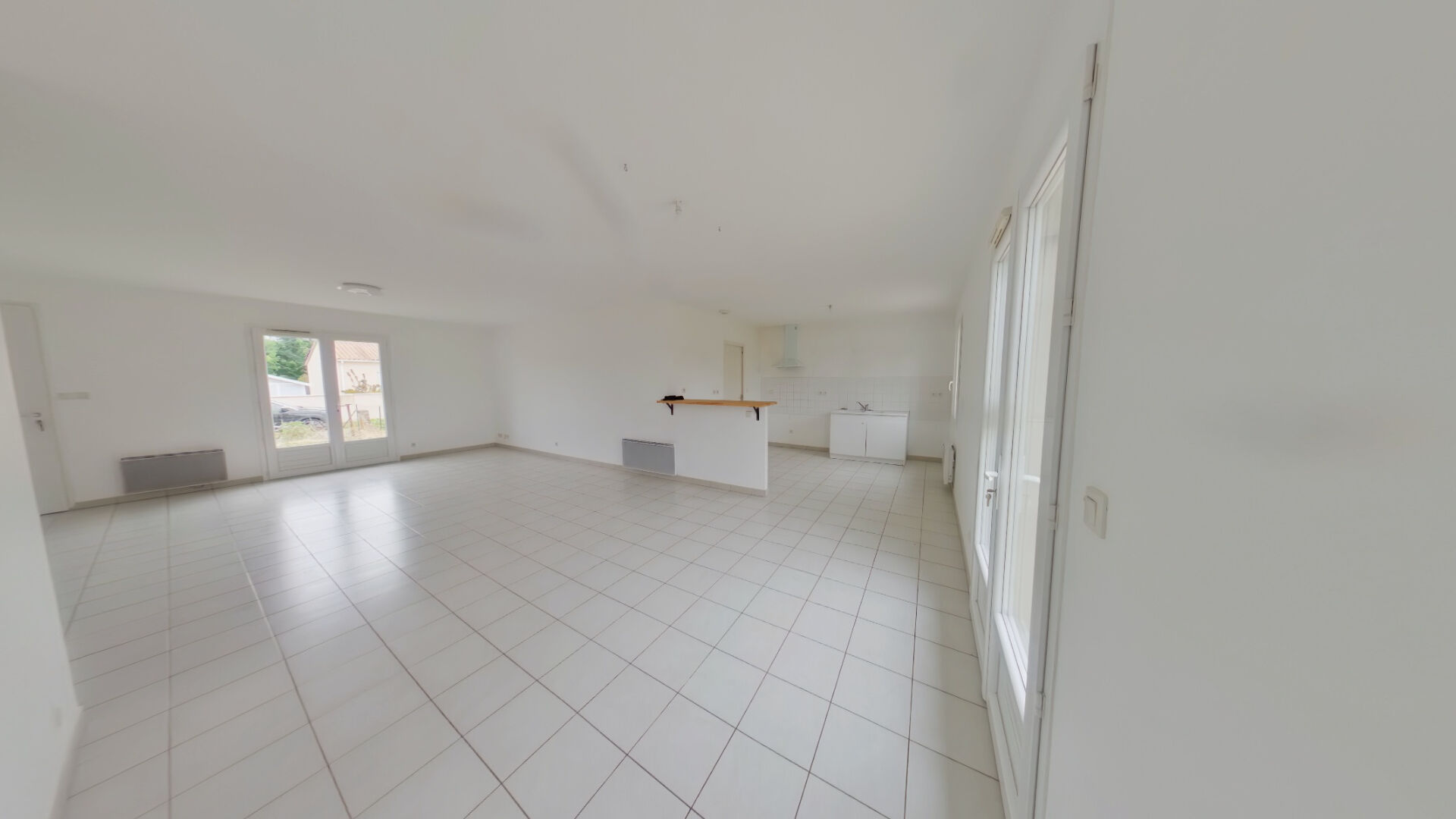 Entrée donnant sur une grande pièce de vie lumineuse avec cuisine ...