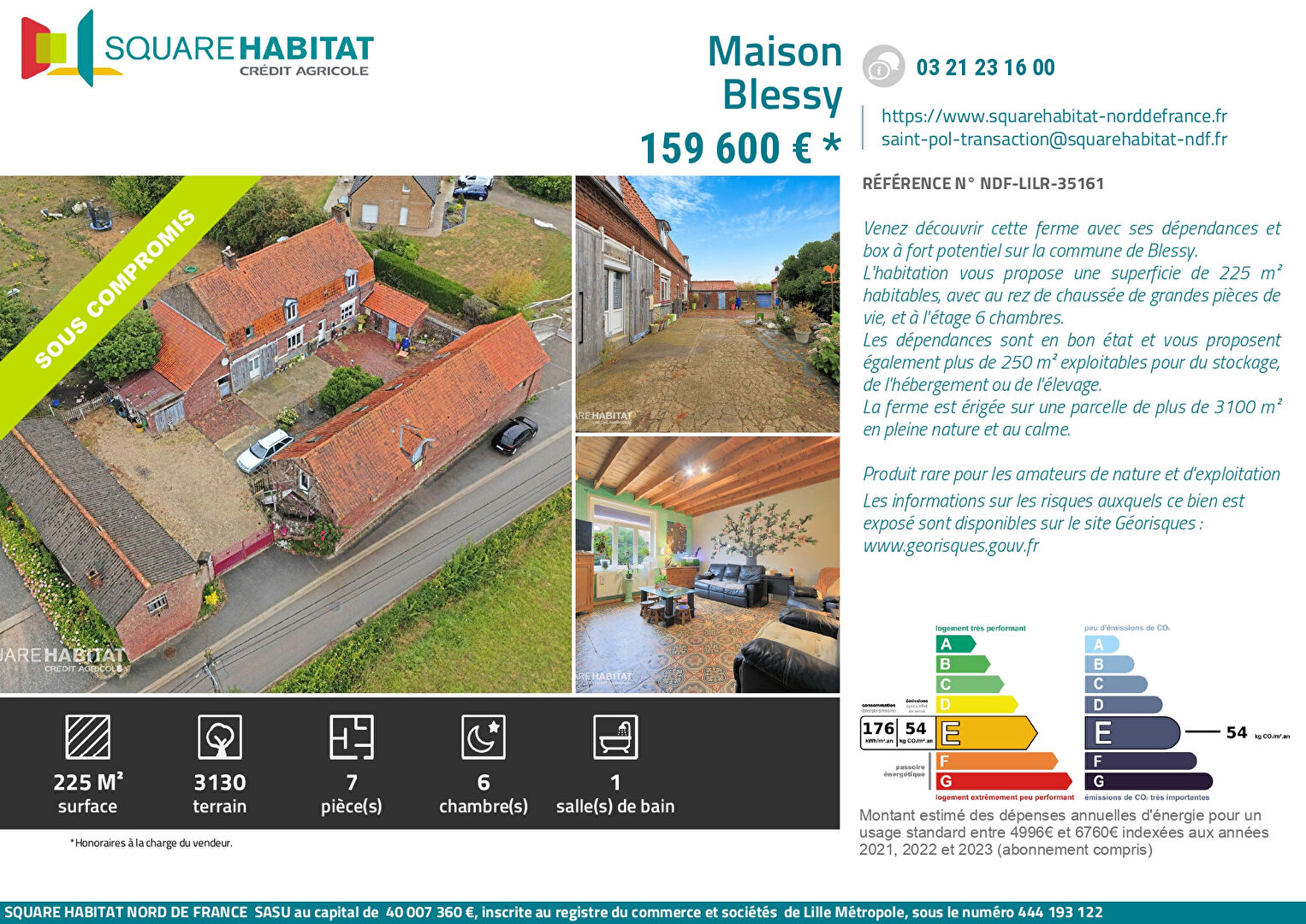 L'habitation vous propose une superficie de 225 m² habitables, avec au rez de chaussée de grandes pièces de vie, et à l'étage 6 chambres.