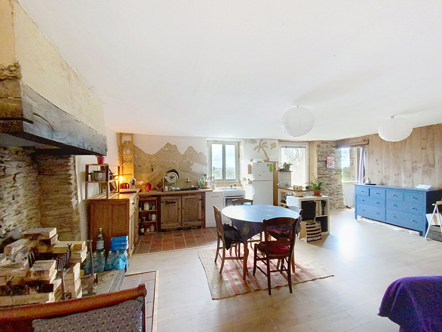 Maison d'habitation de 110 m² avec un bel espace de vie /garage atelier hangar Comprenant au rez de chaussée un espace vie, salon séjour, cuisine, arrière cuisine, deux chambres.