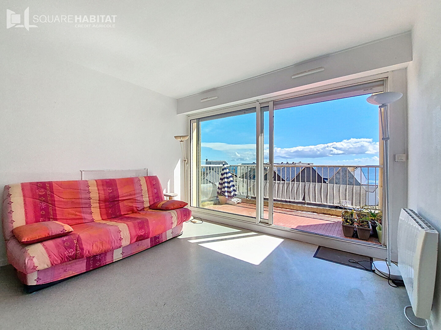 A proximité immédiate du centre-ville et de la Grande Plage, il est composé d'une entrée avec placard, un séjour lumineux exposé Sud donn...