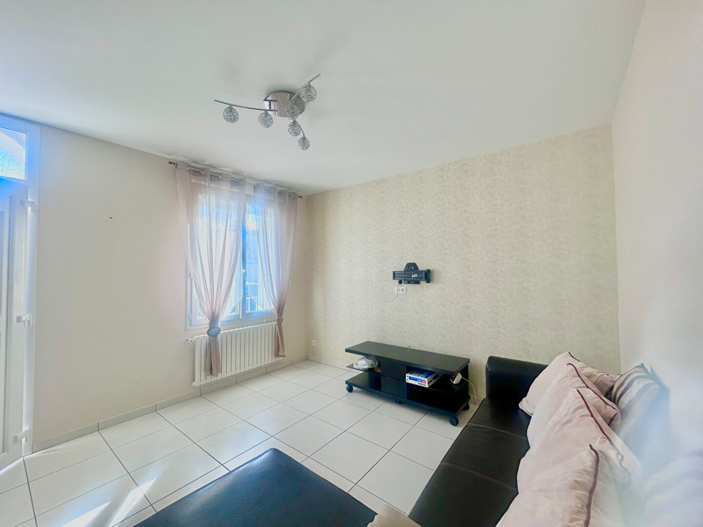Appartement lumineux et traversant situé au 1er étage d'une petite copropriété de deux étages comprenant une entrée desservant un salon, un bureau ou une petite chambre, une chambre, une cuisine aménagée et une salle d'eau avec WC.