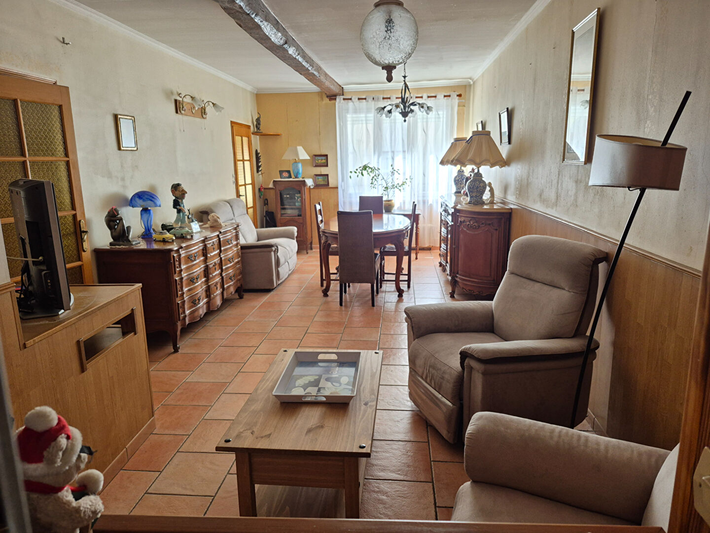 Elle se compose au rez-de-chaussée d'un séjour , d'une salle à manger