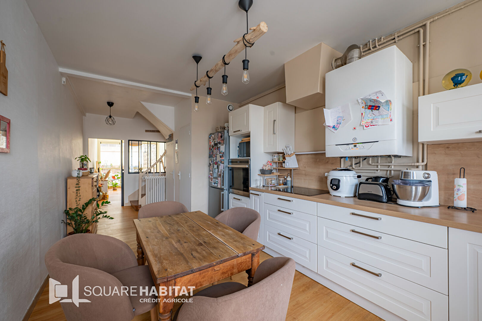 A deux pas de la gare !!! Maison de 102m² rénovée avec goût comprenant une cuisine équipée, un salon, WC, cellier, salle de bains et une chambre au rez de chaussée; à l'étage deux grandes chambres avec placards.