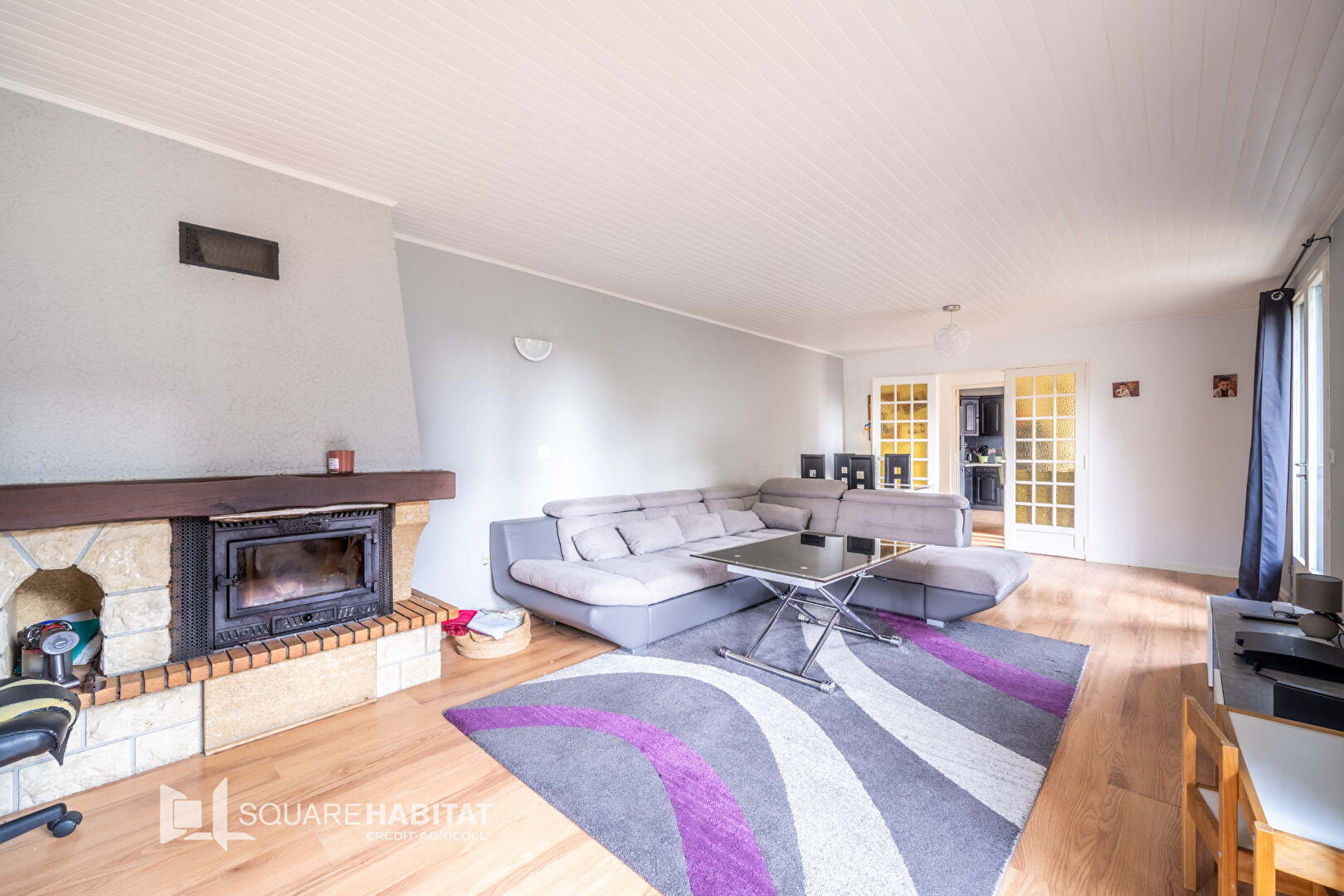 Maison plain pied de 98m² comprenant une cuisine indépendante, un salon-séjour, trois chambres, une salle de bains, un WC et un garage de 37m².
