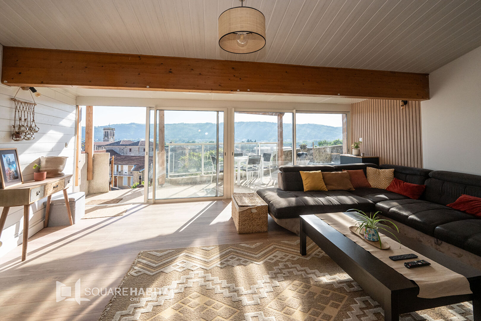 En plein centre de Saint-Vallier, à proximité immédiate des commerces et de tout ce qui facilite le quotidien, venez découvrir cet agréable appartement de 110m² type duplex