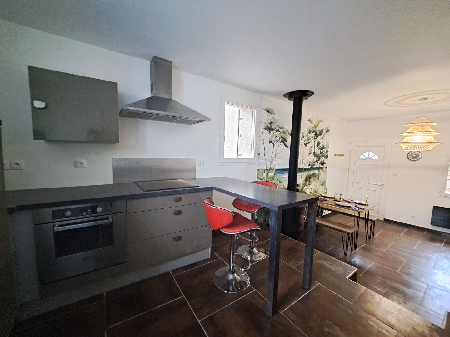 Maison de 3 pièces de 60m2 composée, au rez-de-chaussée, d'une cuisine entièrement aménagée et équipée, ouverte sur le salon et un WC. A l'étage, deux chambres dont une avec placard et une salle d'eau avec WC.
