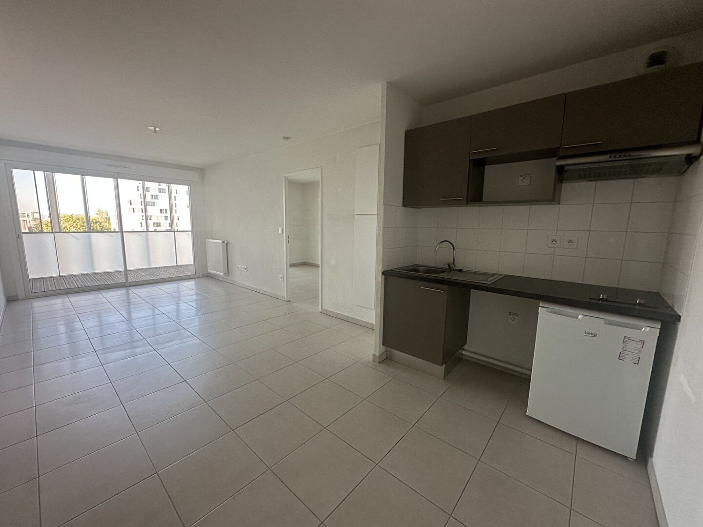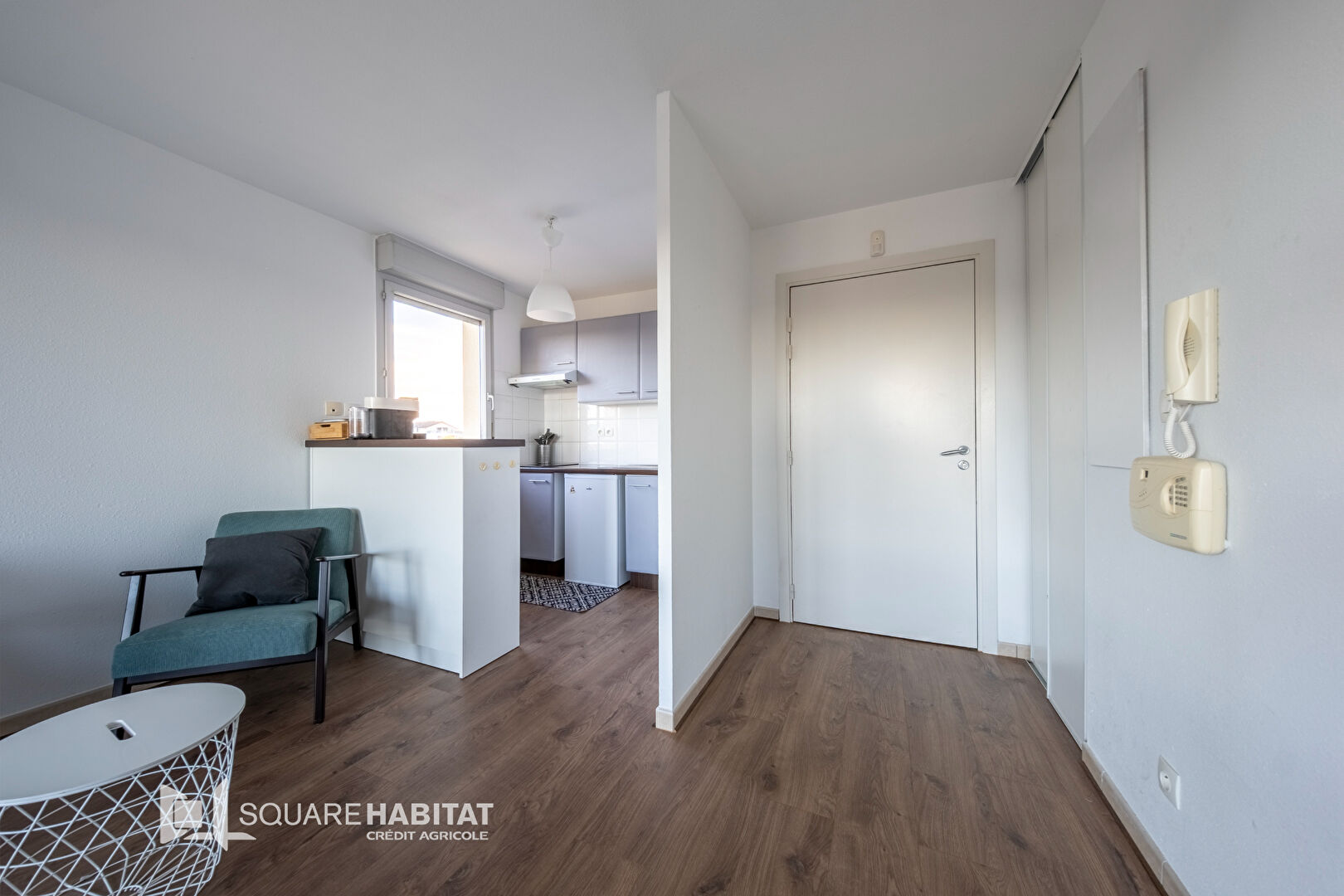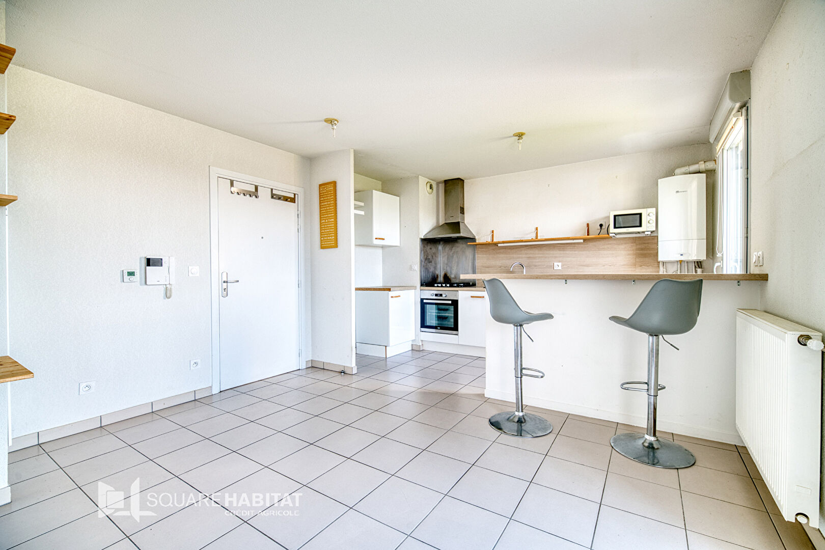 L'appartement se compose d'une entrée donnant sur le séjour avec son coin cuisine.