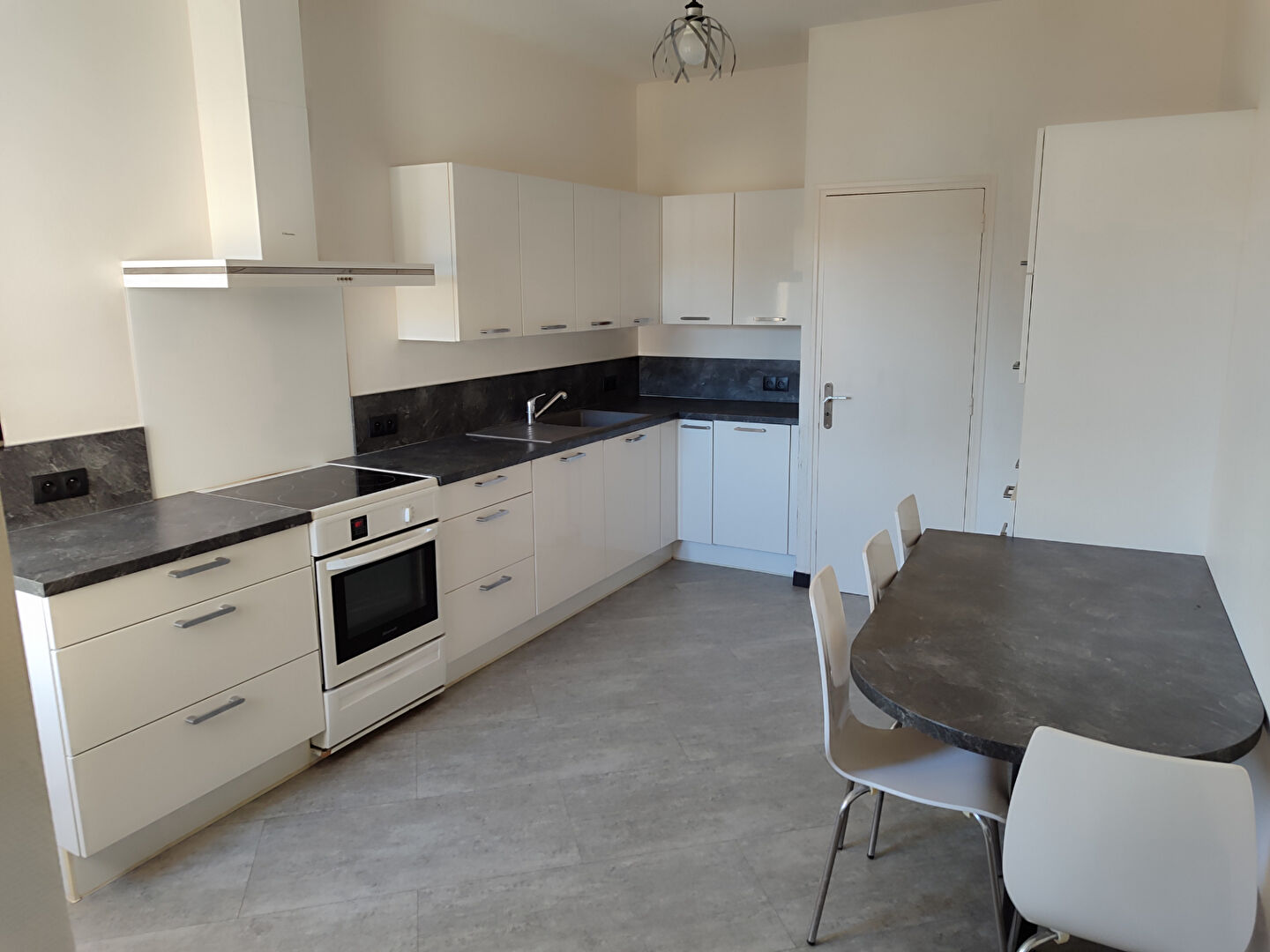 Une cuisine ouverte, deux pièces, une chambre, une salle d'eau, un WC, cellier et une buanderie.