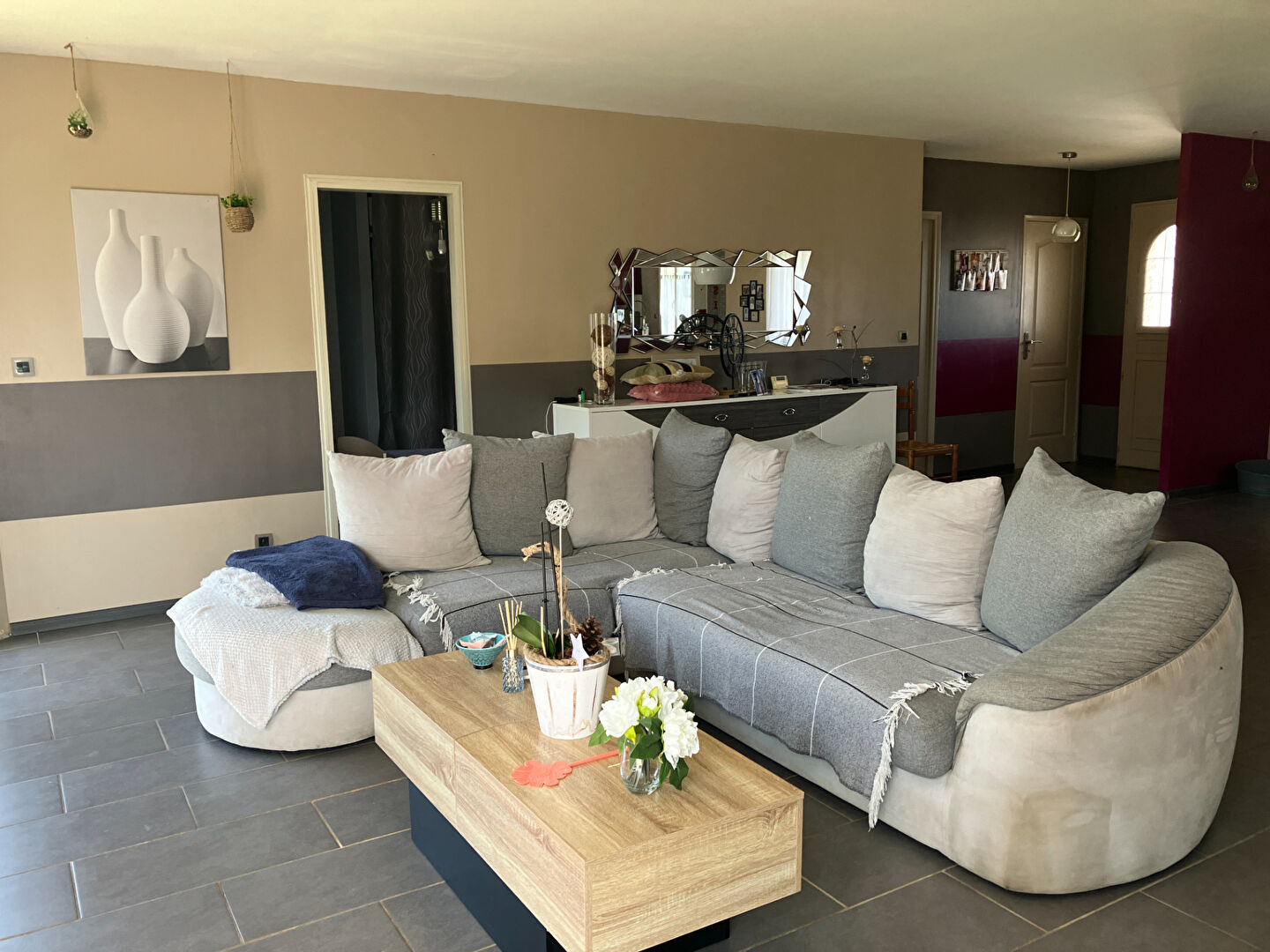 Une belle pièce de vie ouverte sur cuisine, 4 chambres, une salle de bains, 2 toilettes, une buanderie avec cave par dessous.