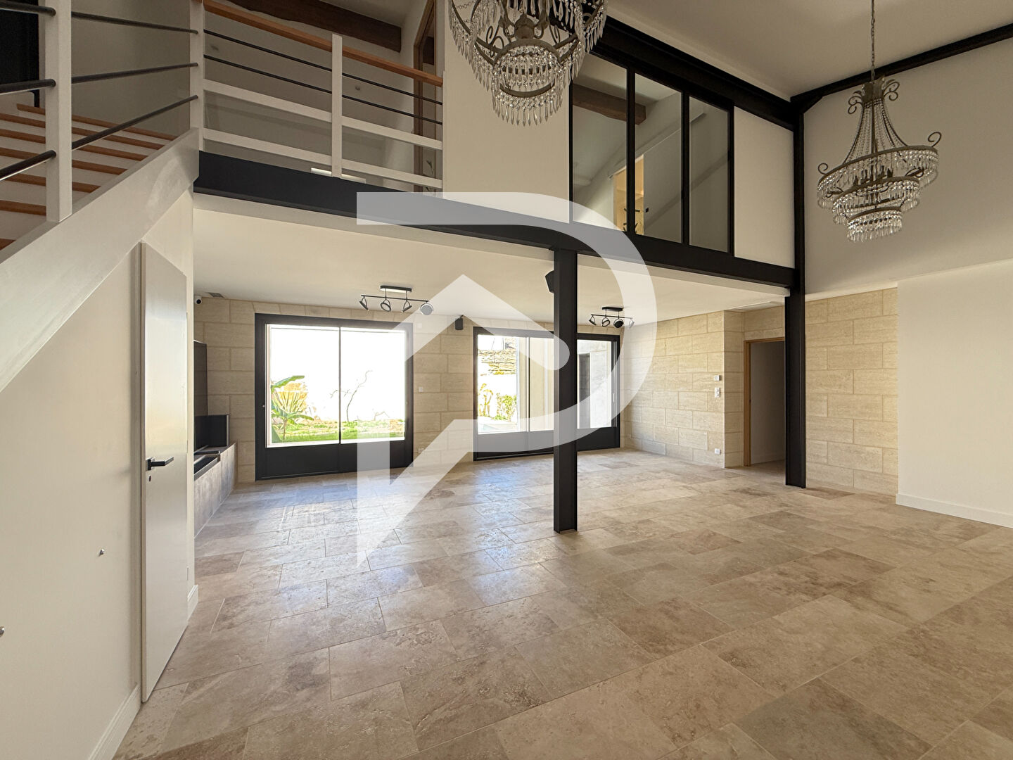 A l'étage, vous trouverez un grand plateau de 350 m2 avec un patio de 50 m2.