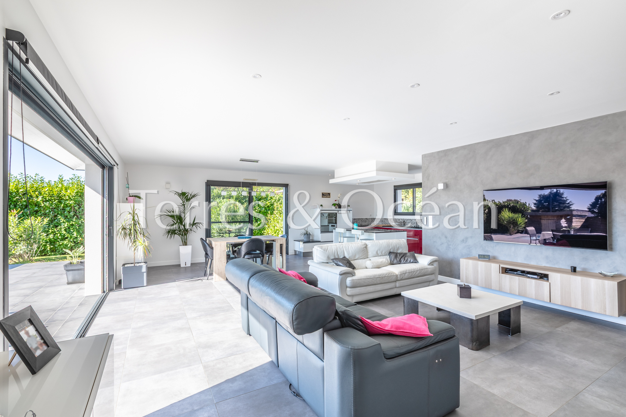 Au calme et située au sud des Landes, à 2 minutes de Peyrehorade, Port-de-Lanne et 35 minutes de Biarritz ou 30 de Bayonne, belle maison de plain-pied de 134 m2 environ, sur un terrain de plus de 900m2. Construction récente et traditionnelle avec de belles pre...