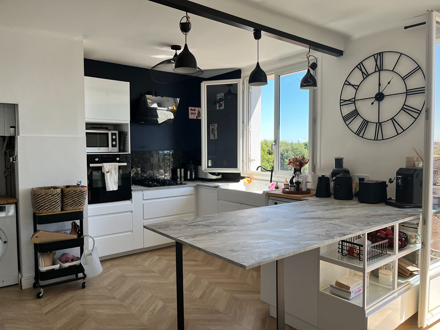 Au 4 -ème et dernier étage avec ascenseur, ce beau T3 de 80 m² offre une vue dégagée et une lumière naturelle tout au long de la journée.