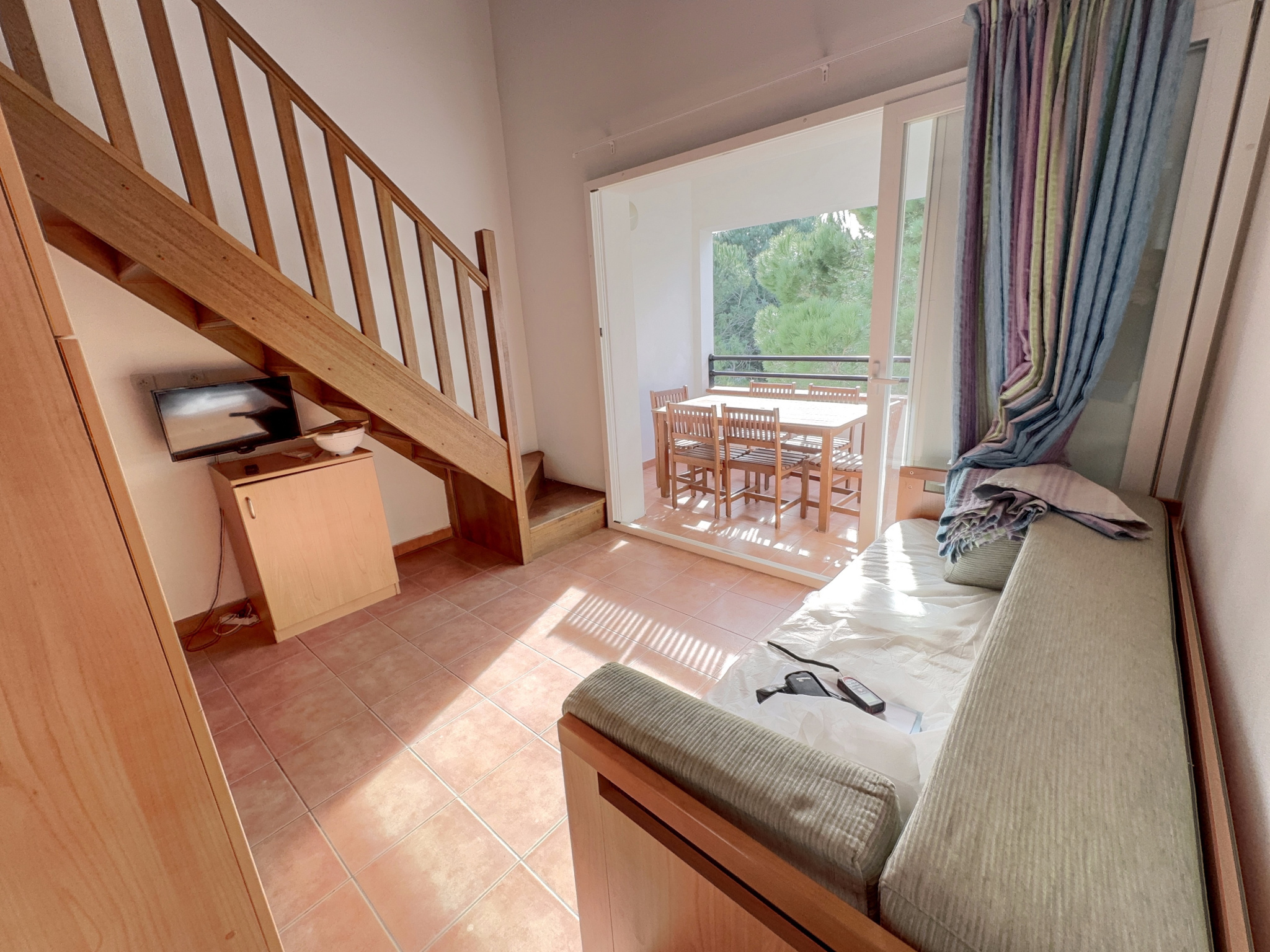 A vendre sur MORIANI PLAGE, un APPARTEMENT de type T3 en duplex situé en 2ème étage, comprenant un séjour avec coin cuisine, un dégagement, une chambre, une salle de douche avec WC, et une mezzanine + une terrasse (7.76m2 environ). Appartement climatisé, d...