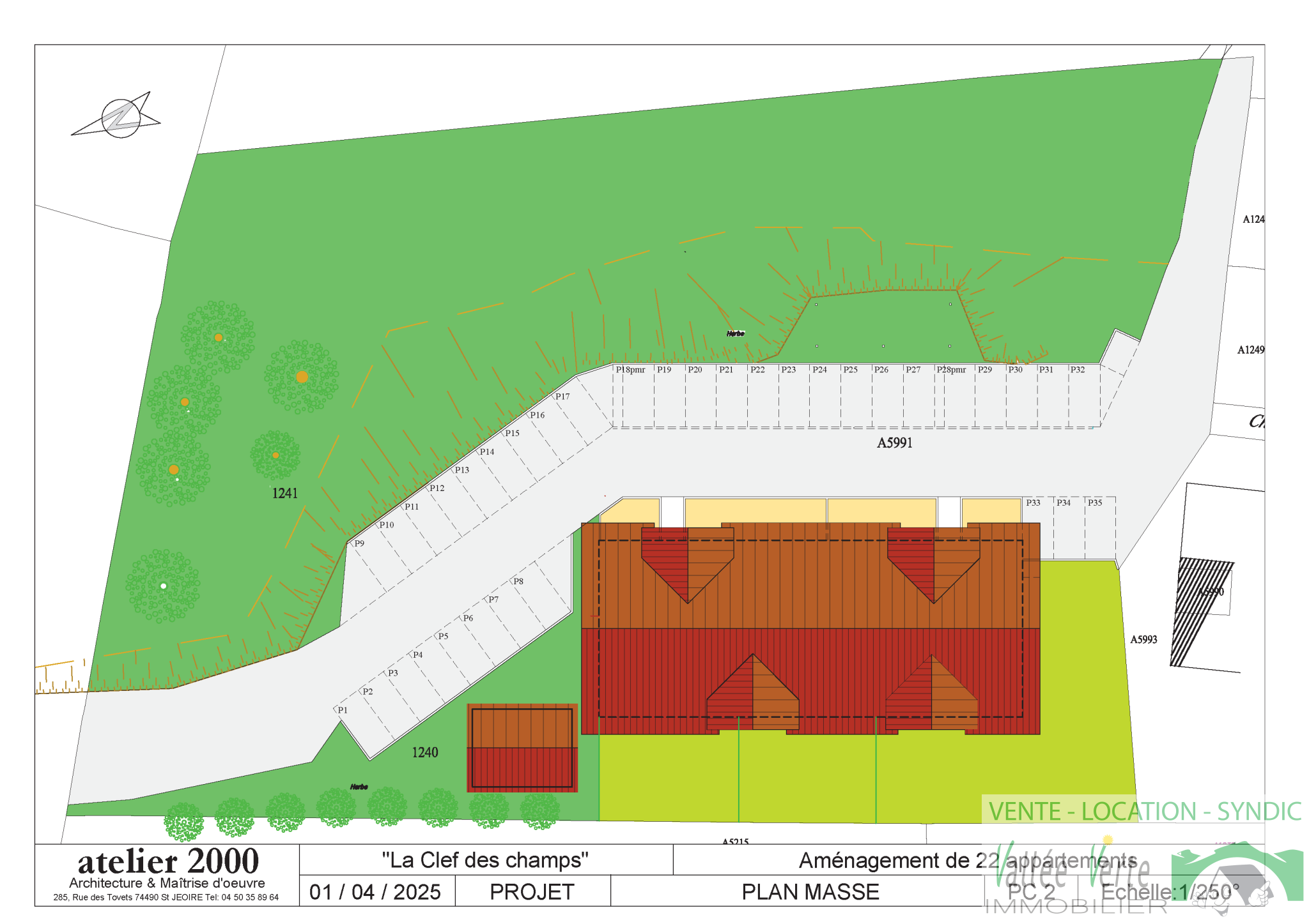 Dans un ensemble immobilier de 22 logements/plateaux sur les hauteurs de Saint-Jeoire, Plateau type T3 au 1er étage d'une surface de 77.20 m2 + Balcon de 5.80 m2 et une place de parking.