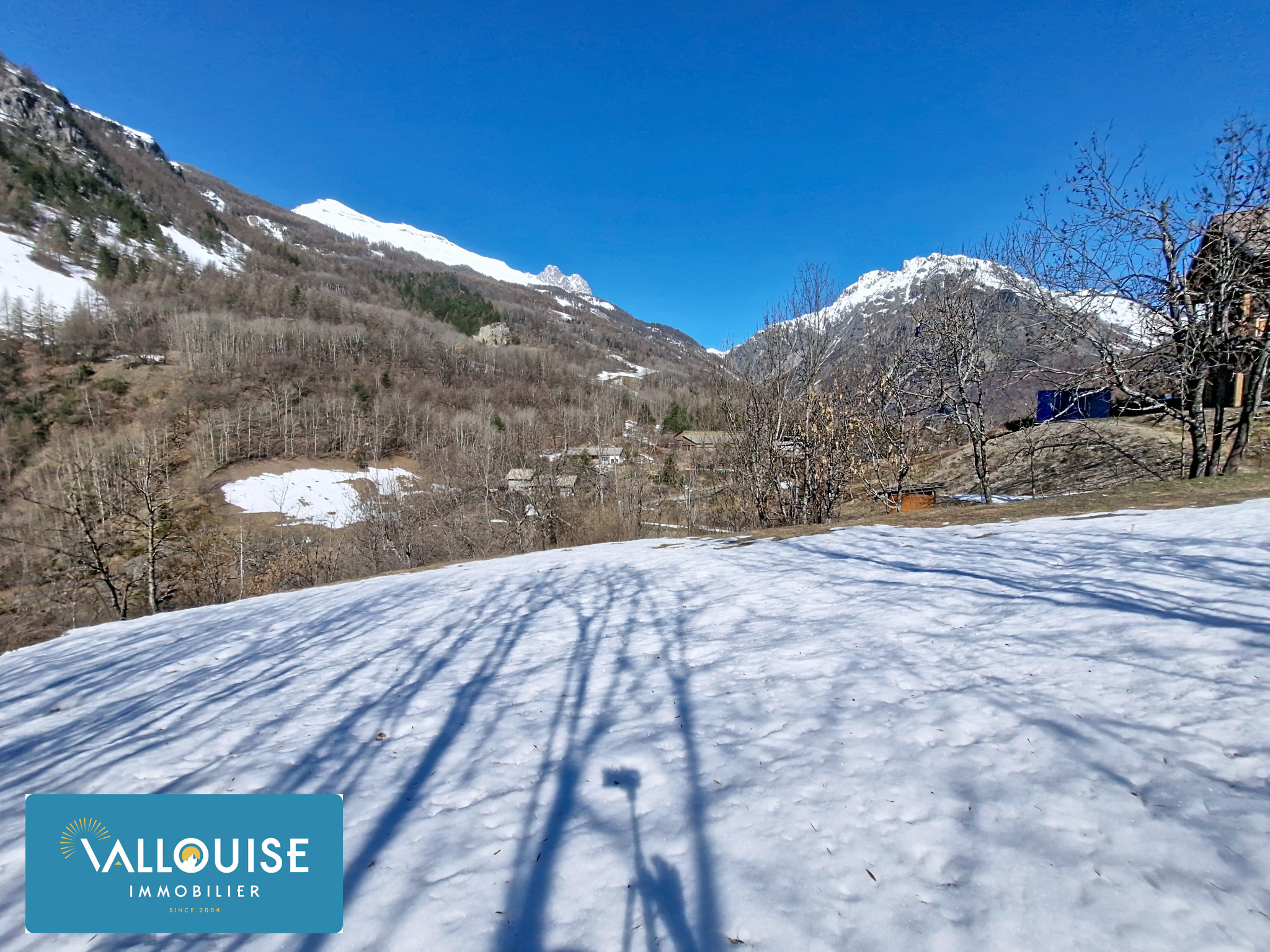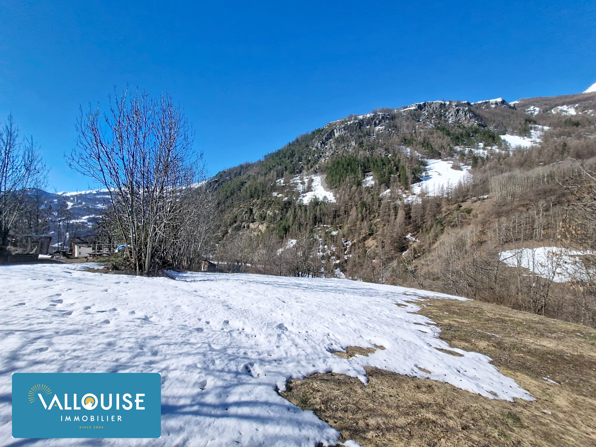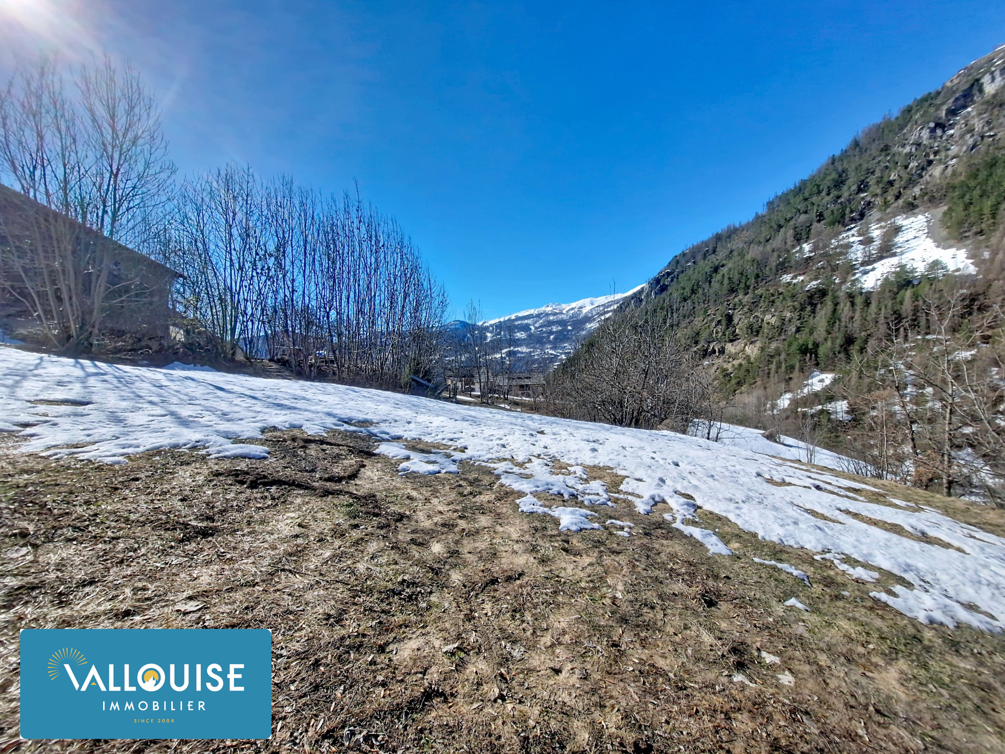 Sur les hauteurs du Sarret, à mi-chemin entre le centre village de Vallouise et la station de Pelvoux, très beau terrain constructible de 1732m2.