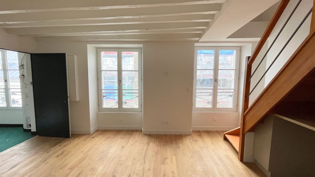 Paris 7ème rue de Bourgogne/rue de Grenelle, un appartement de 3p en DUPLEX de 49 m2 (60,80 m2 au sol) en duplex, au 5è étage par escalier principal, entièrement refait à neuf, comprenant séjour/salle à manger, cuisine américaine, deux chambres dont une en dup...