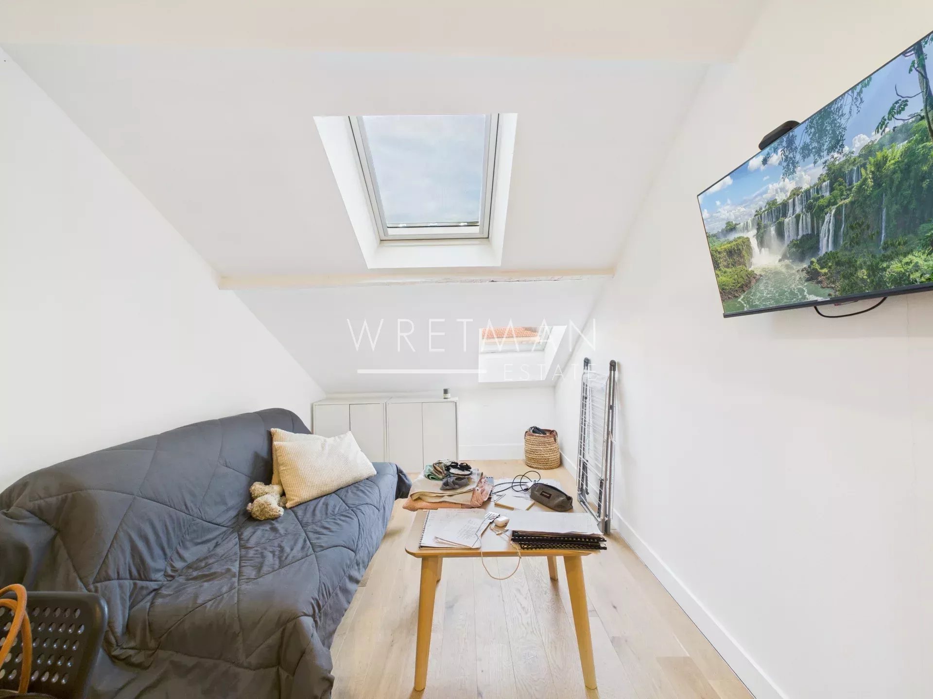 Charmant studio en mezzanine décoré avec soin, situé au 3ème et dernier étage d’un immeuble avec ascenseur.