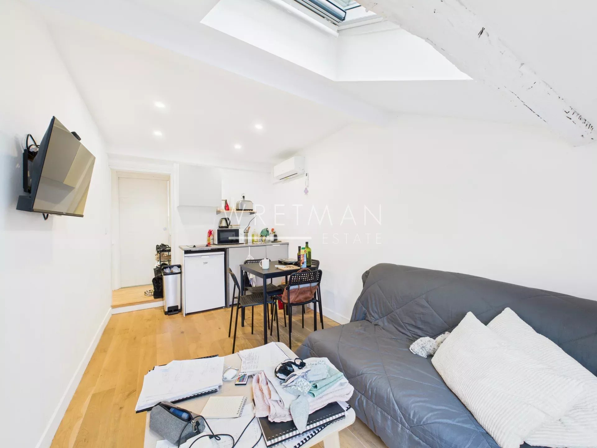 Au 6e et dernier étage d’un immeuble avec ascenseur, ce studio lumineux et fonctionnel dispose d’une grande terrasse offrant une vue sur le quartier pittoresque du Port et un aperçu de la mer.