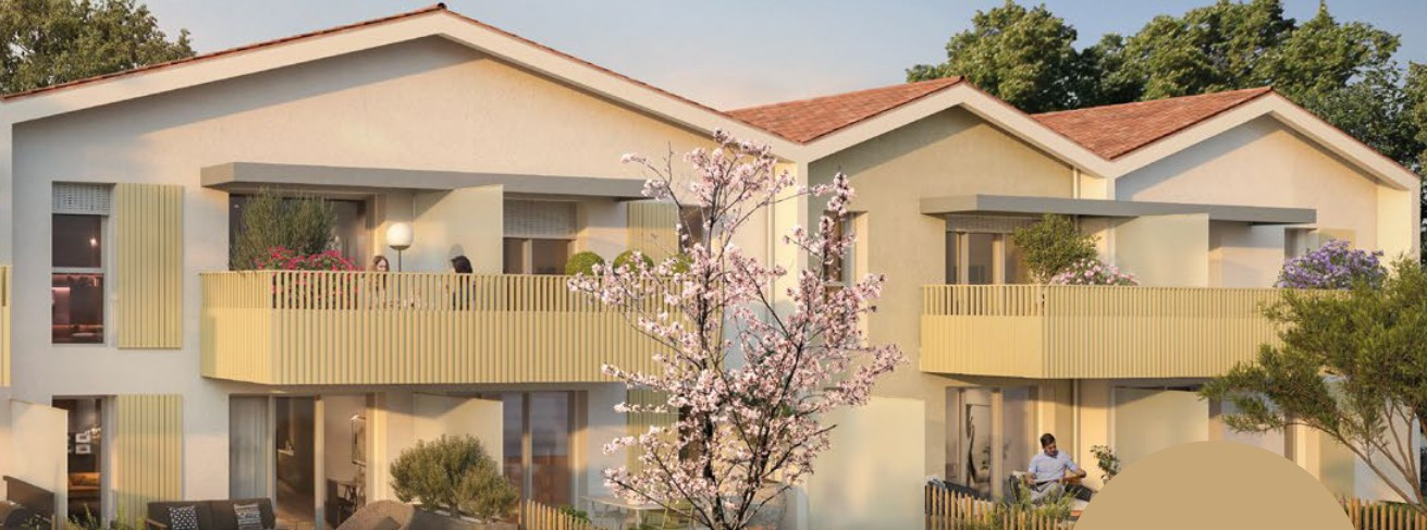 Appartement T2 en rez de jardin, en VEFA, proche de toutes les commodités (commerces, médecins, écoles...), des pistes cyclables, comprenant un séjour avec cuisine équipée, une chambre, une salle de bains avec WC, avec terrasse et un jardin.