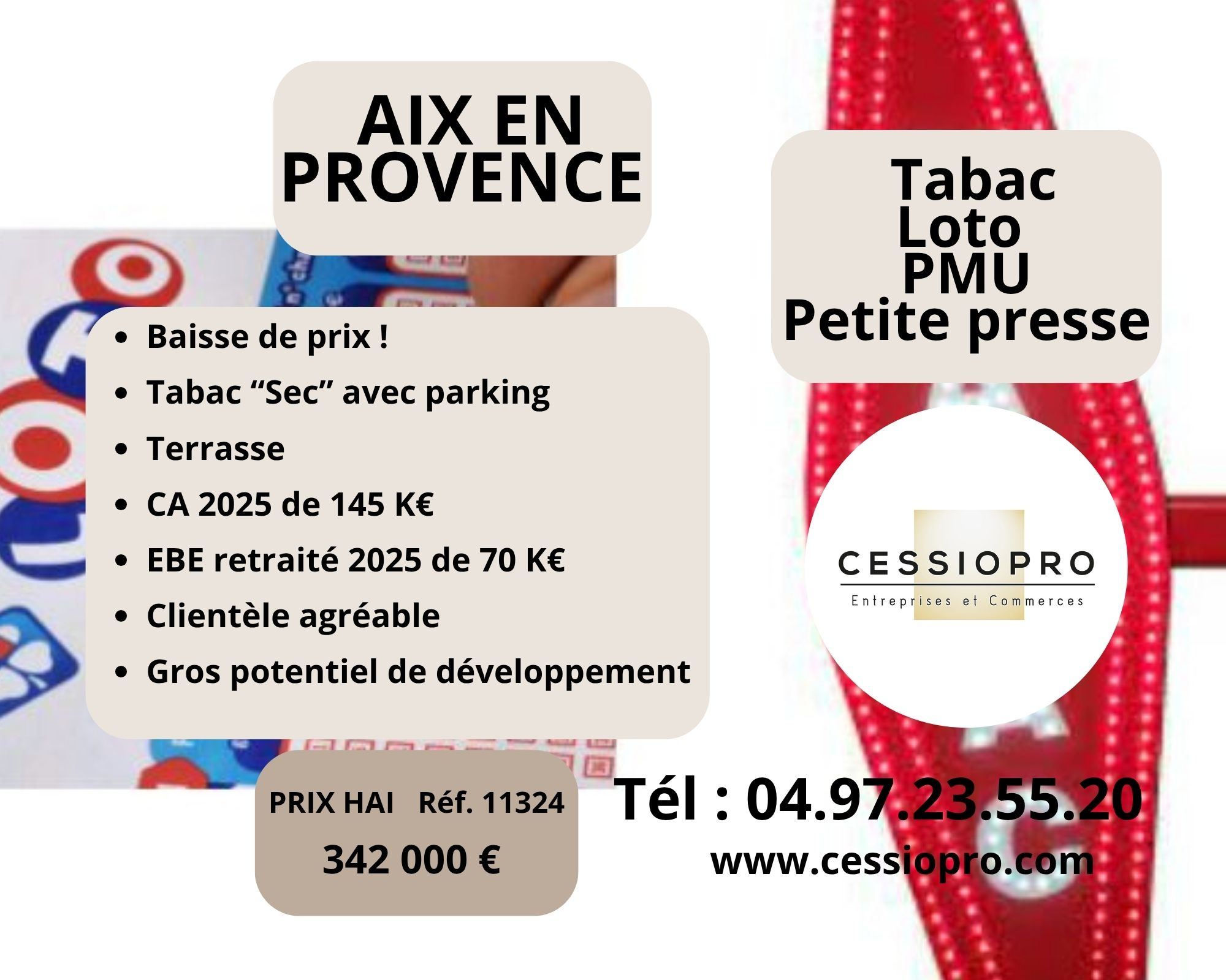 Aix-en-Provence ! Tabac « Sec », avec Parking et très grand potentiel de développement...